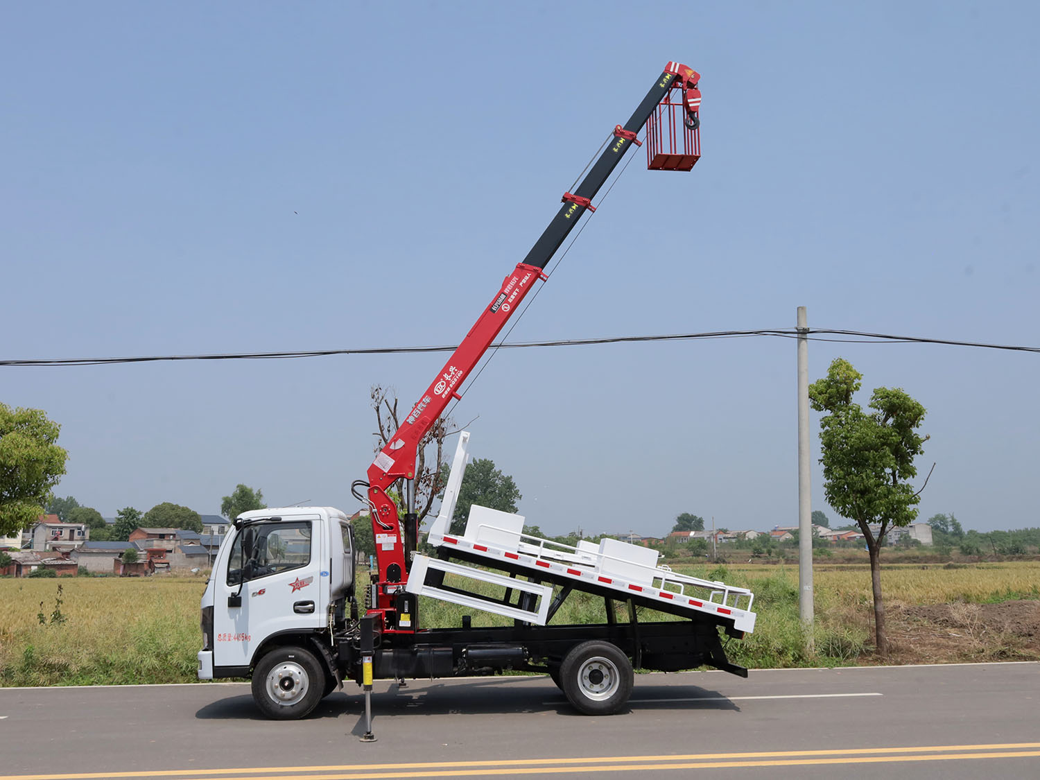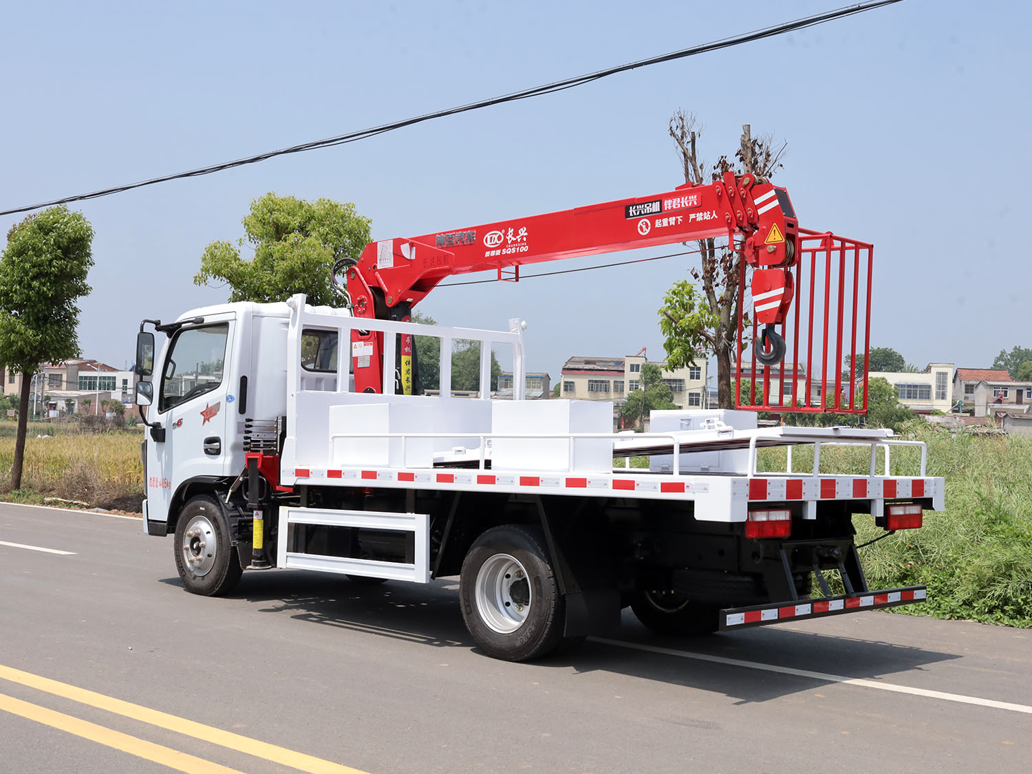 東風多利卡D6單排上裝長興4噸直臂式吊機(藍牌,帶吊籃)