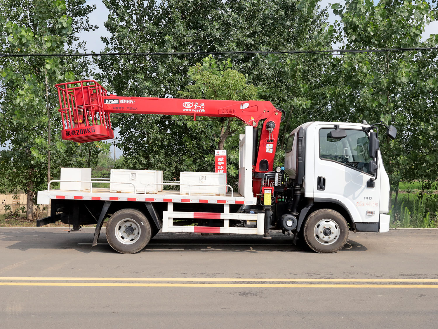 東風柳汽乘龍L2上裝長興4噸直臂式吊機(帶吊籃,藍牌)