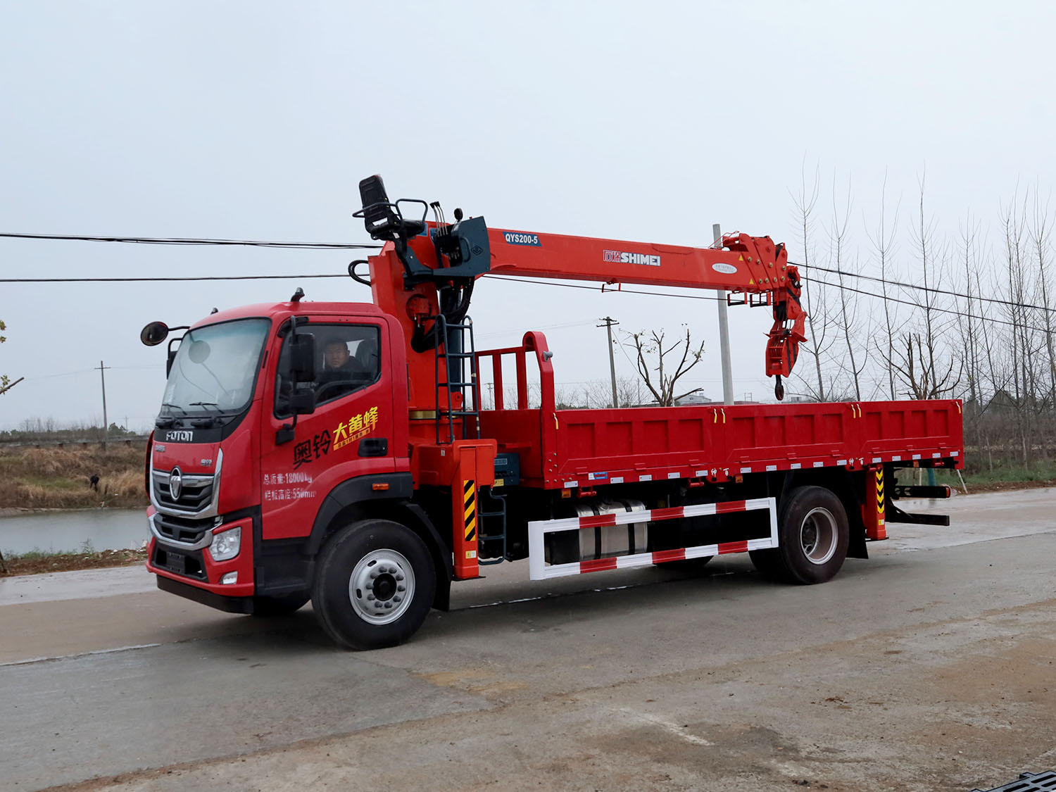 福田奧鈴大黃蜂單排上裝石煤8噸直臂式吊機