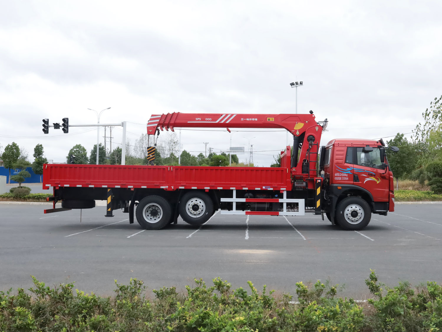 陜汽德龍F(tuán)3000上裝三一10噸直臂式吊機(jī)(帶高空作業(yè)護(hù)欄)