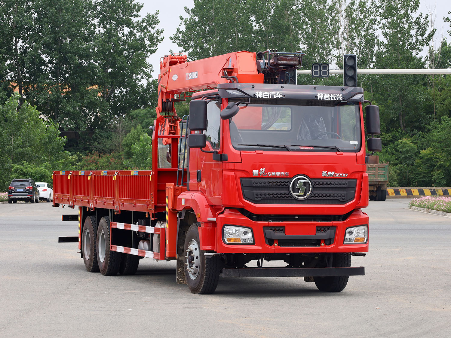 陜汽德龍新M3000后雙橋上裝石煤12噸直臂式吊機