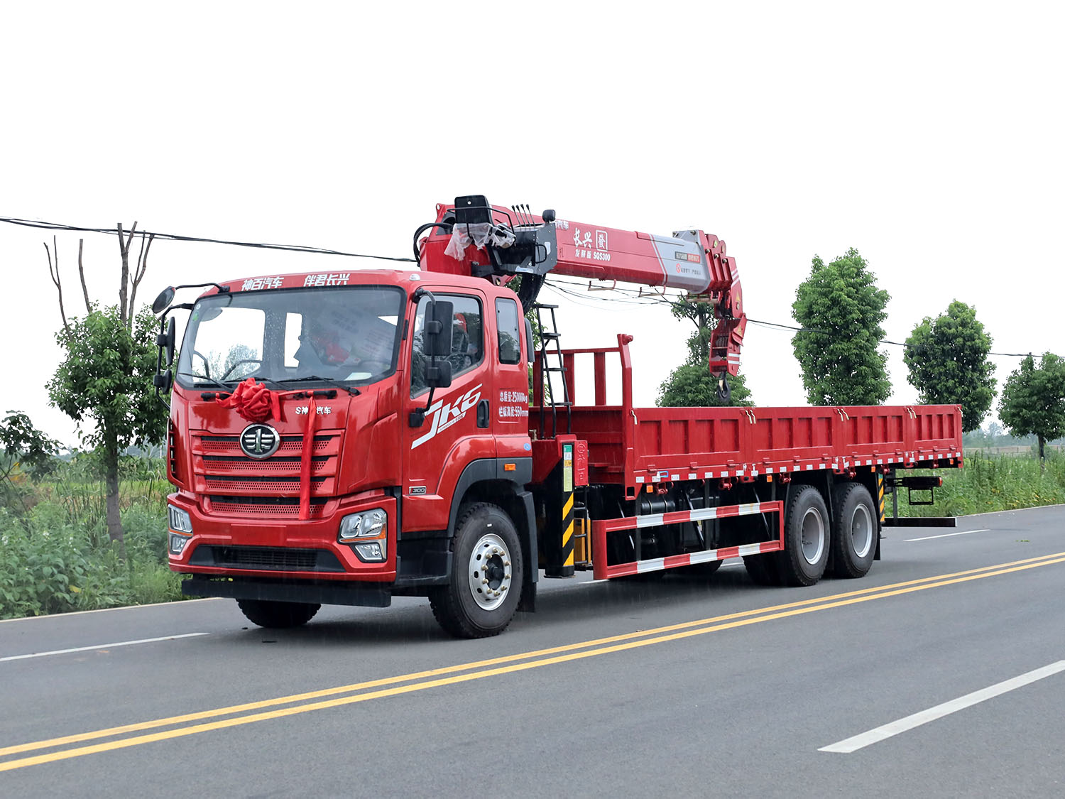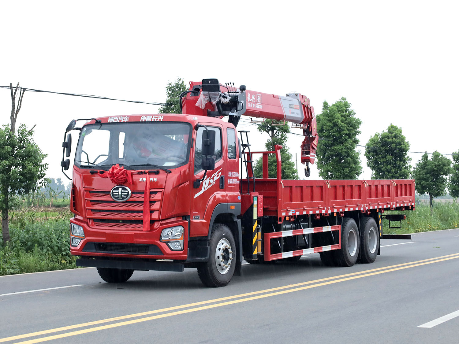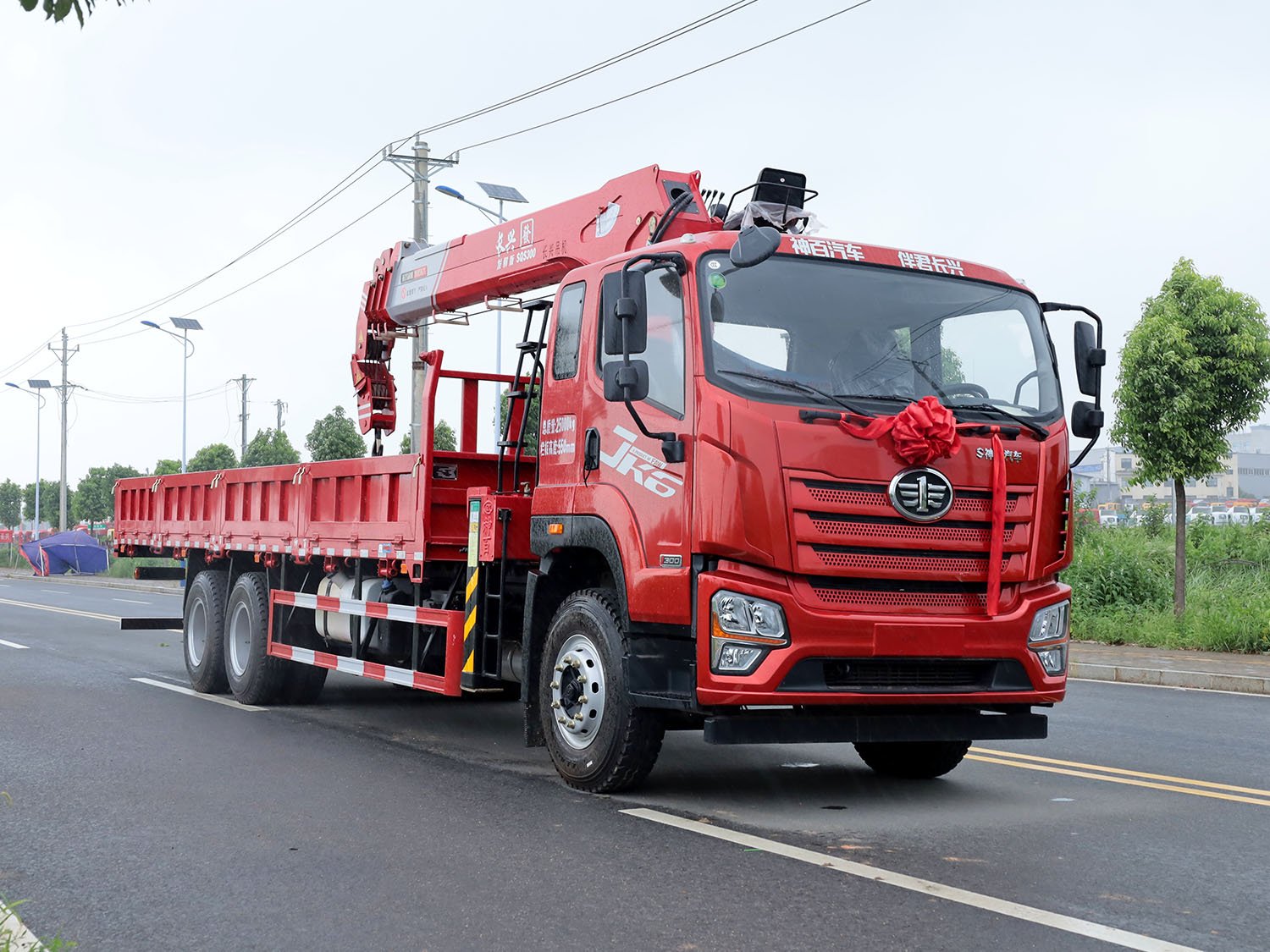 解放JK6后雙橋上裝長興發財版12噸直臂式吊機