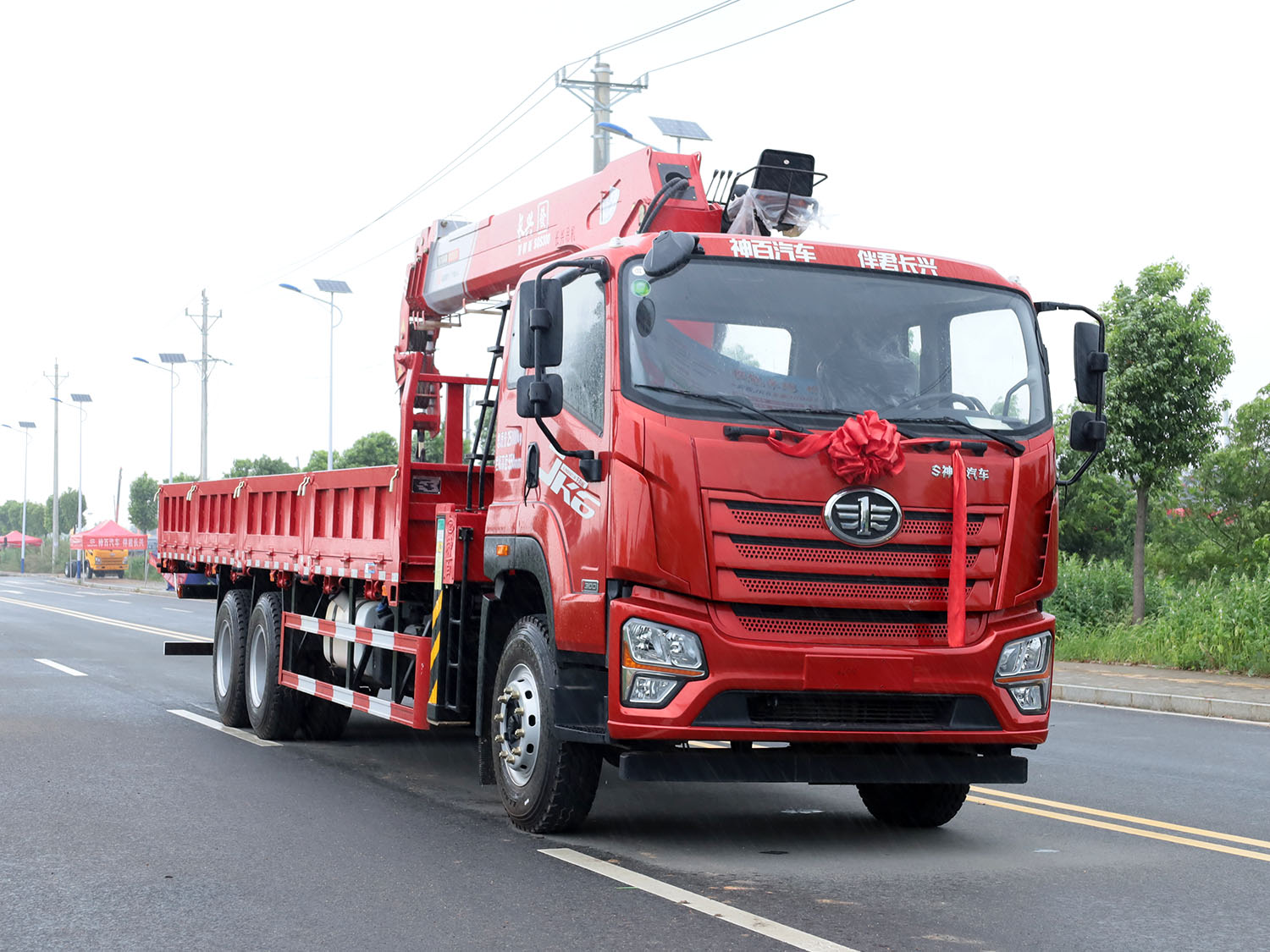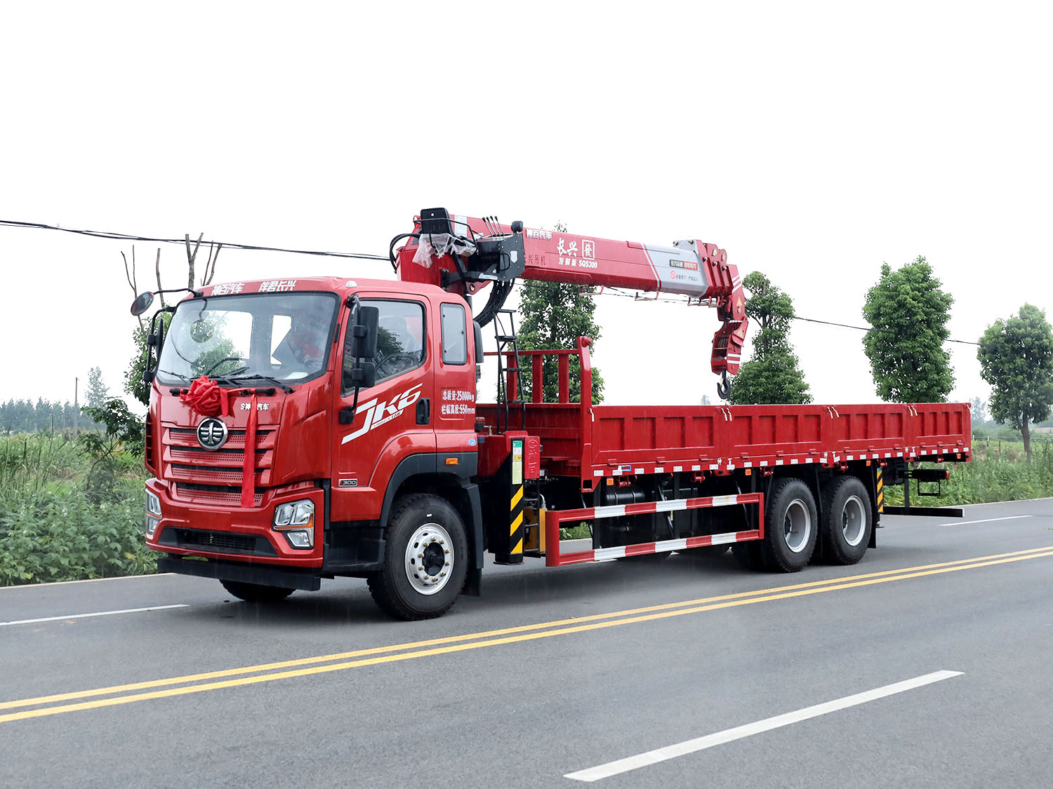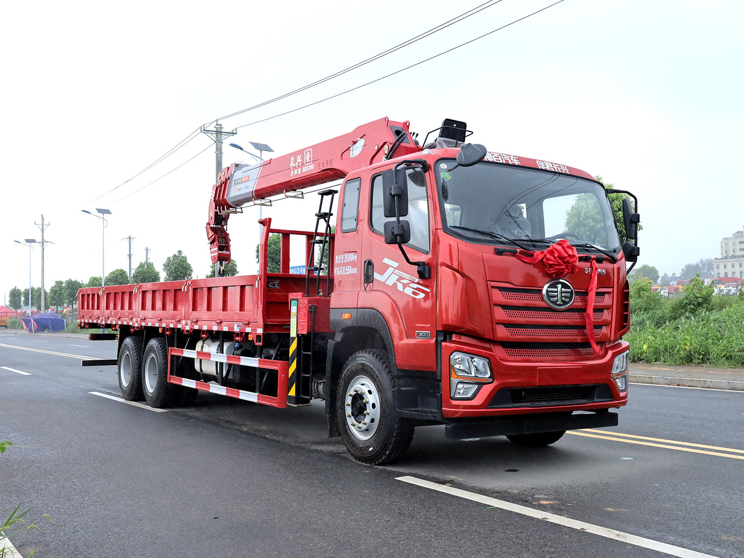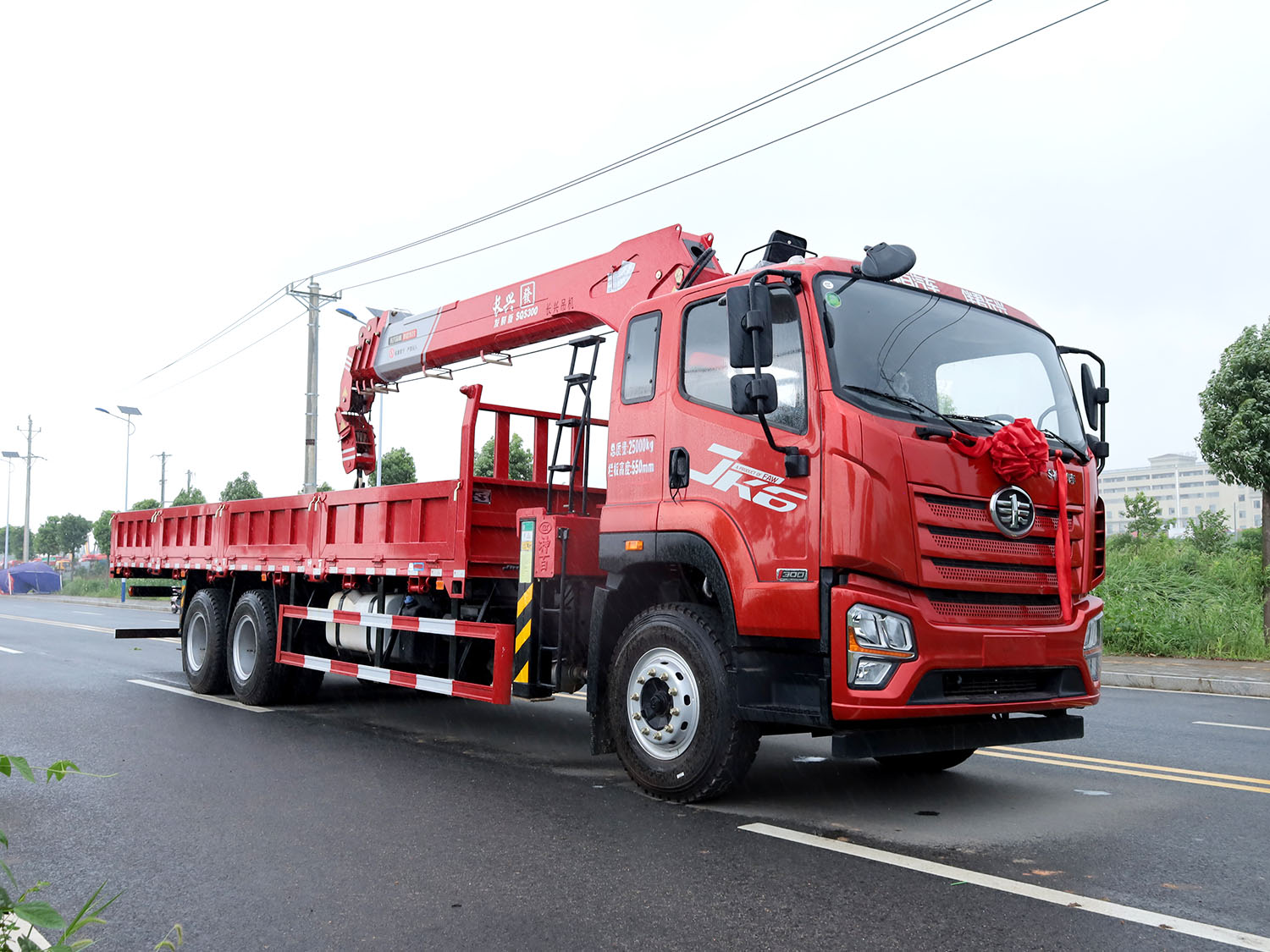 解放JK6后雙橋上裝長興發財版12噸直臂式吊機