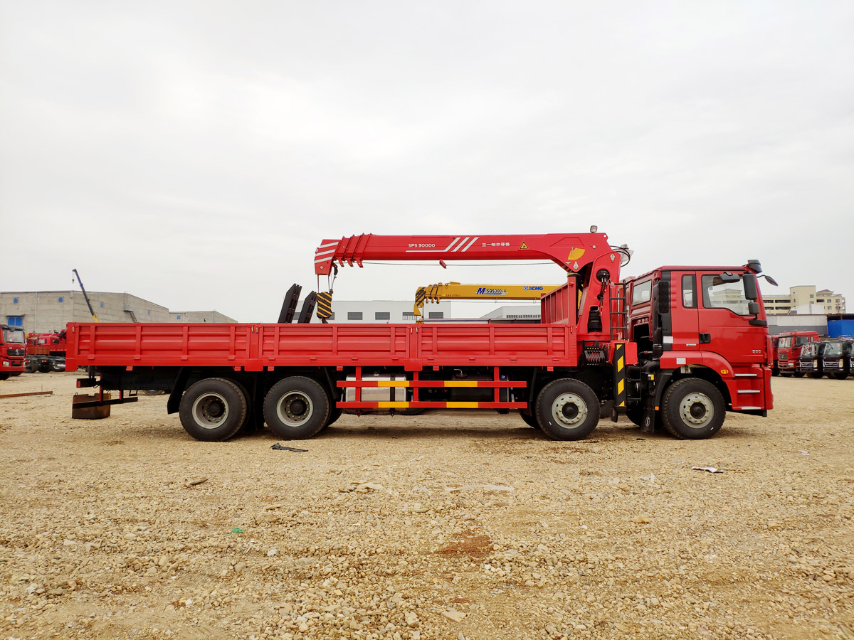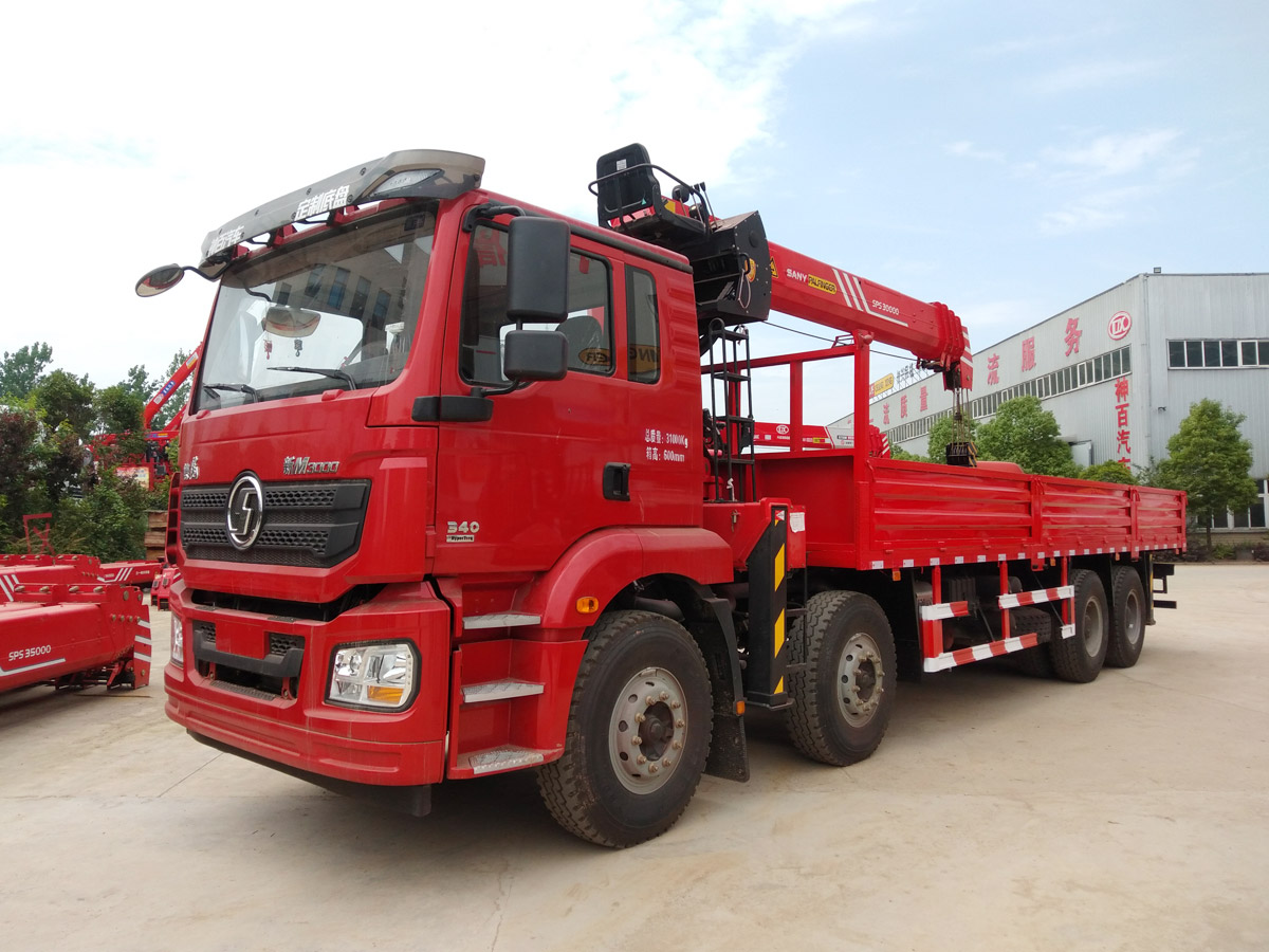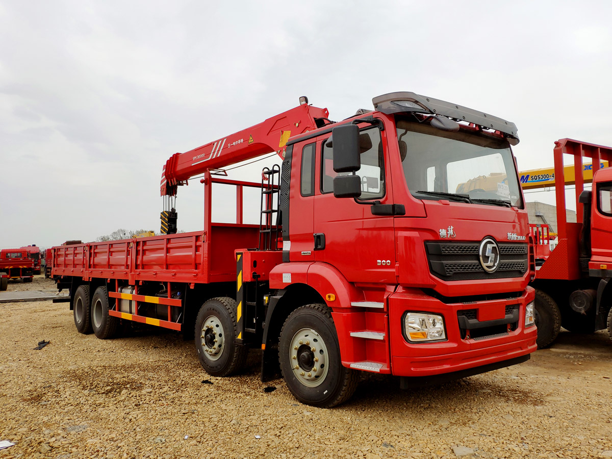 陜汽德龍新M3000駕駛室前四后八上裝三一12噸直臂式吊機