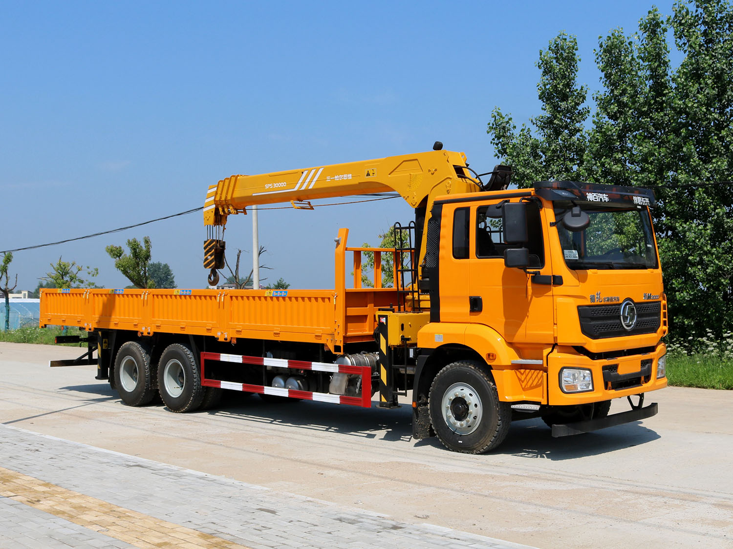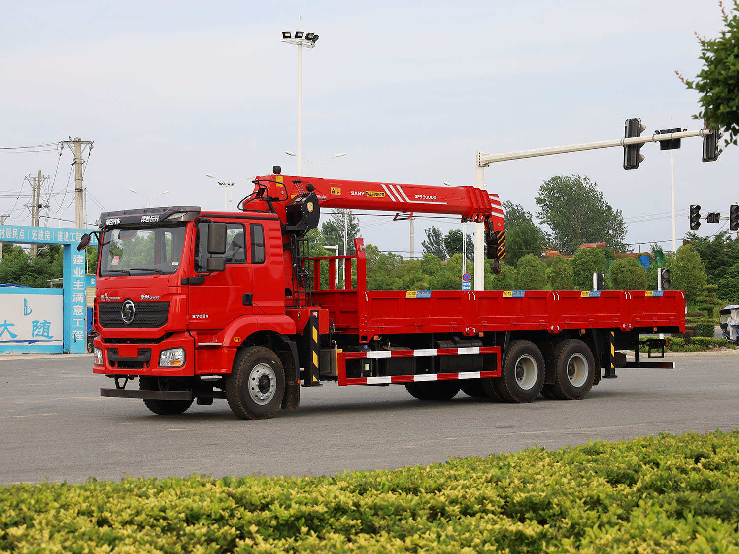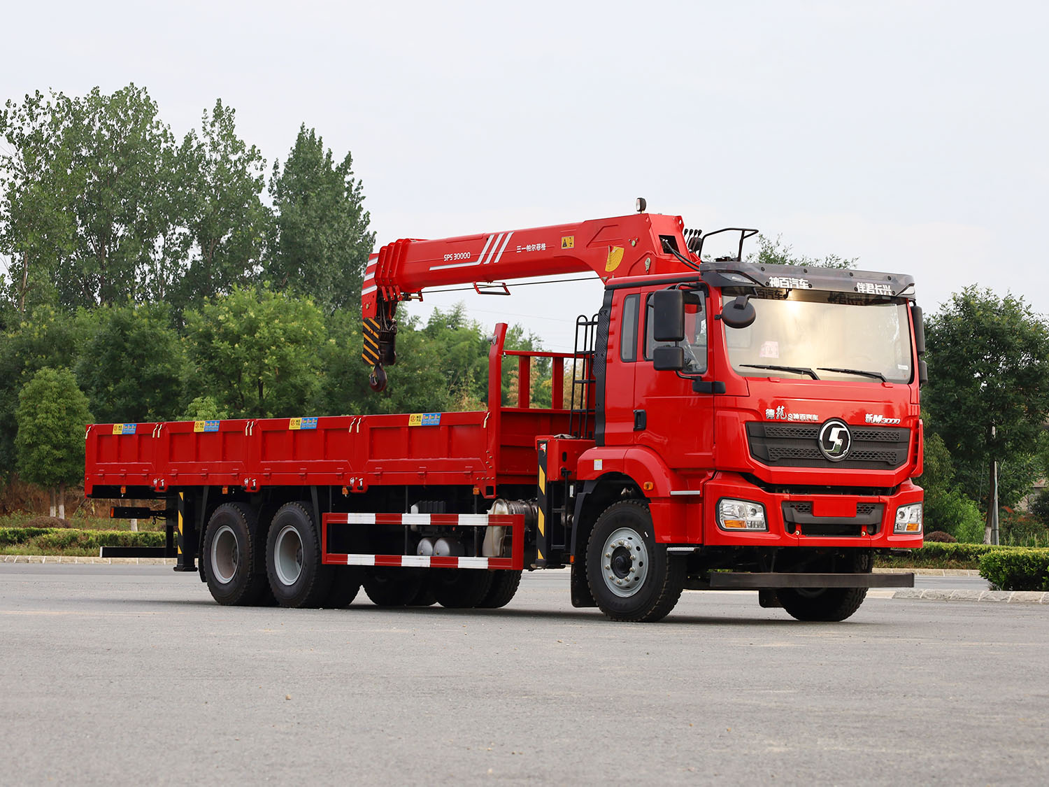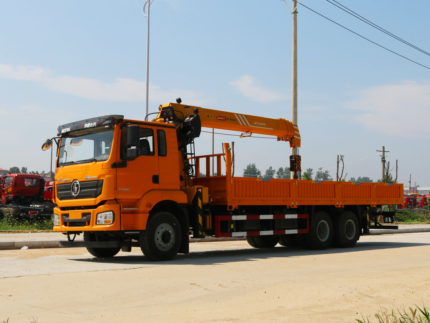 陜汽德龍新M3000后雙橋上裝三一12噸直臂式吊機(jī)