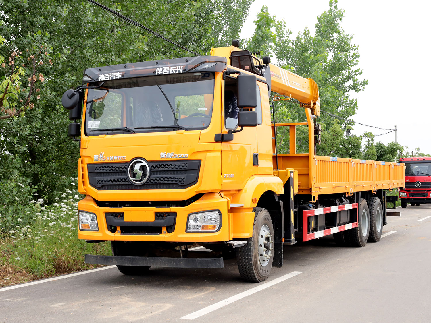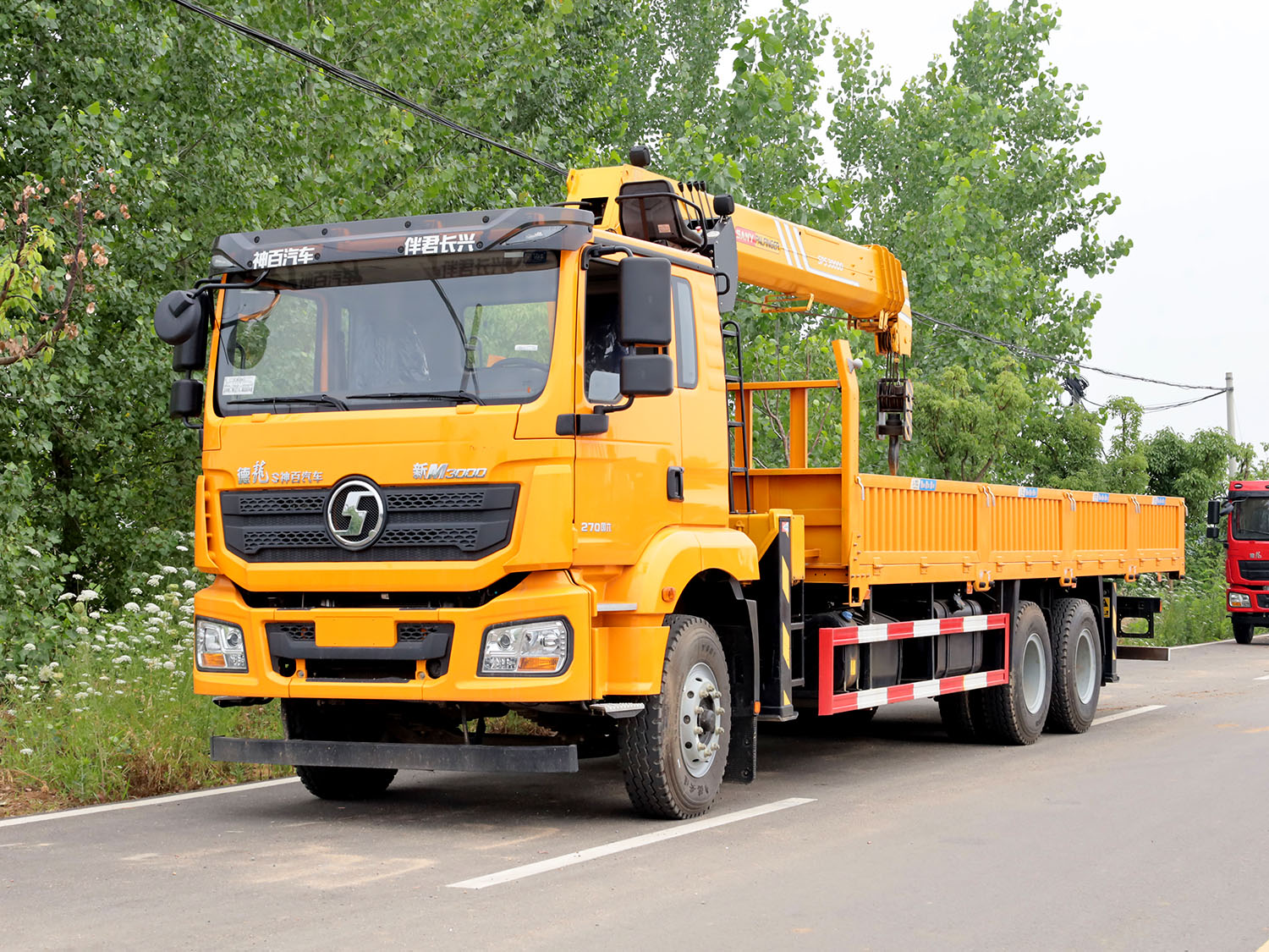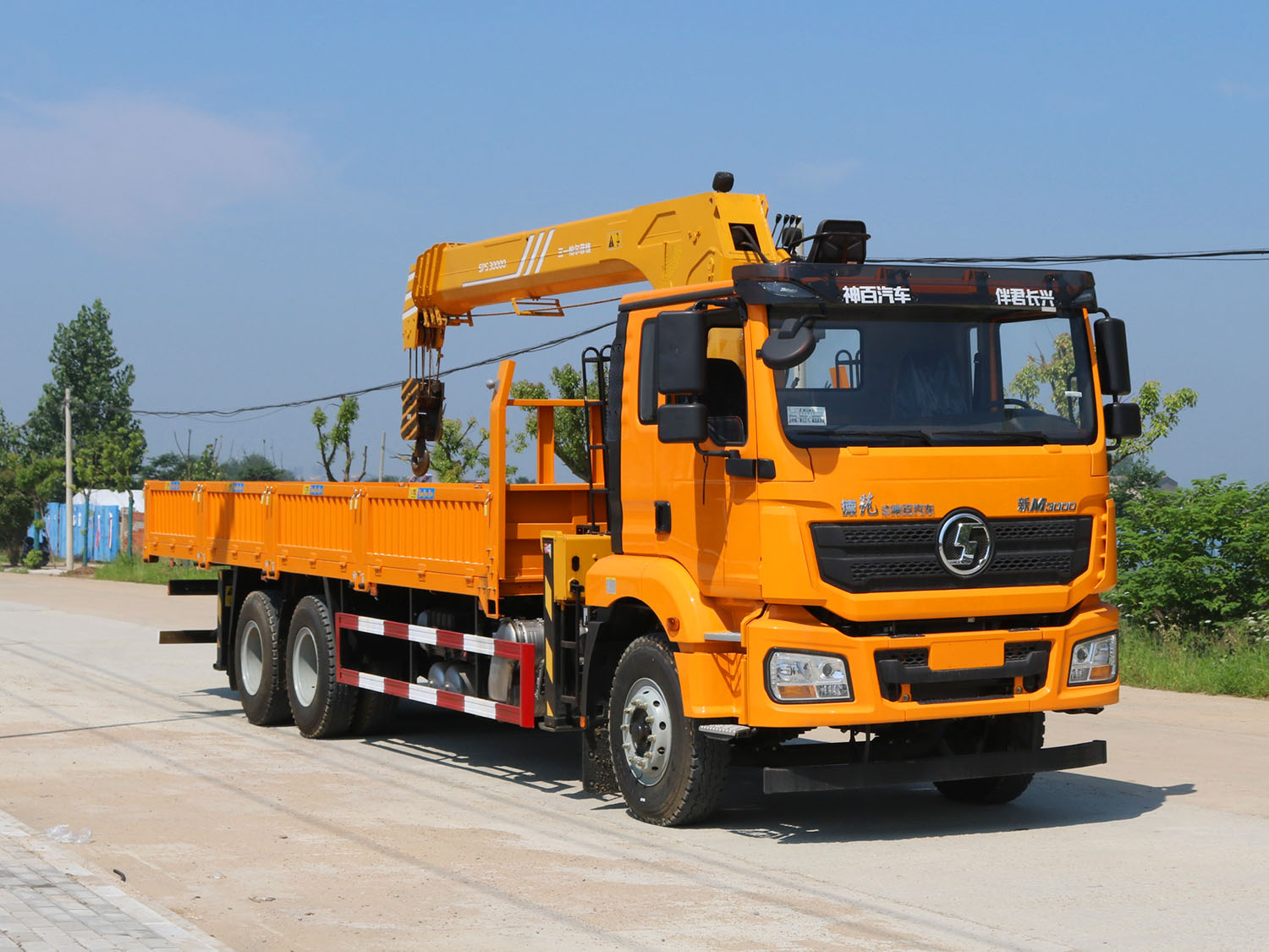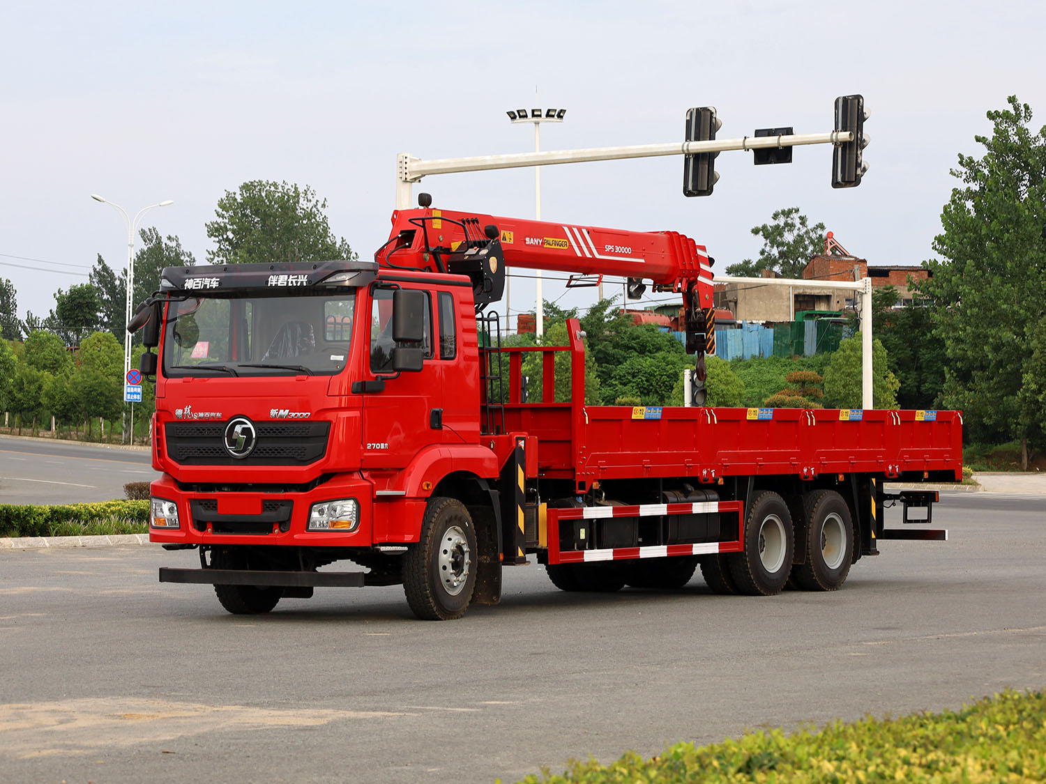 陜汽德龍新M3000后雙橋上裝三一12噸直臂式吊機(jī)