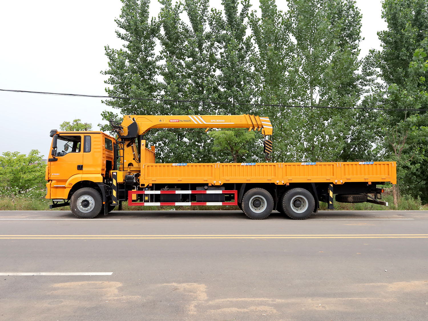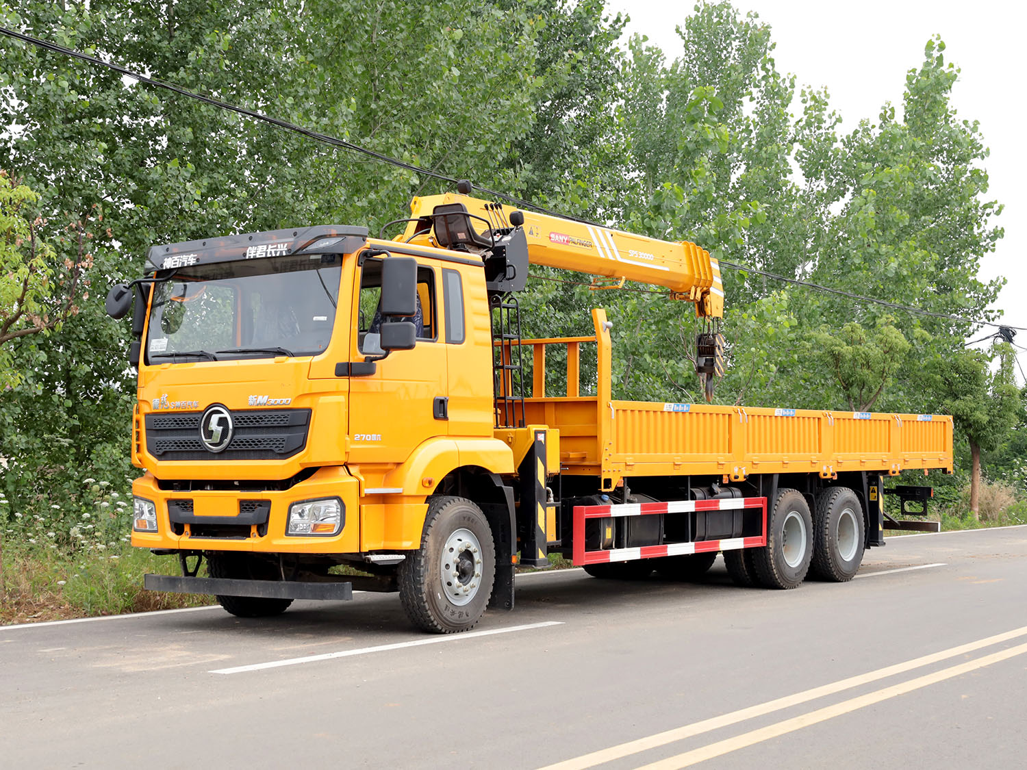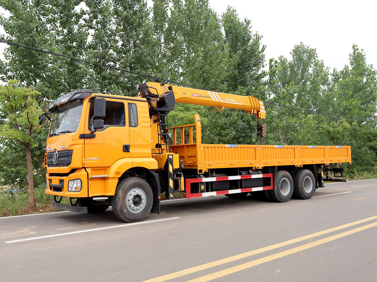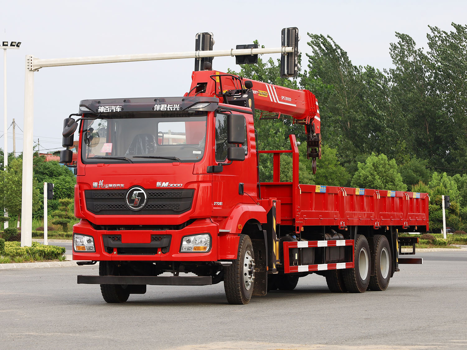 陜汽德龍新M3000后雙橋上裝三一12噸直臂式吊機(jī)