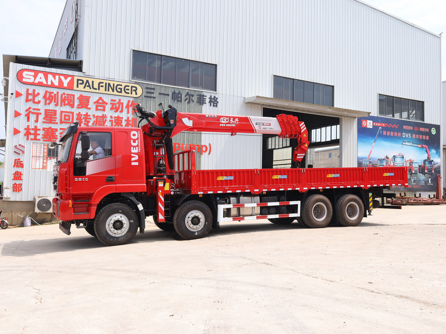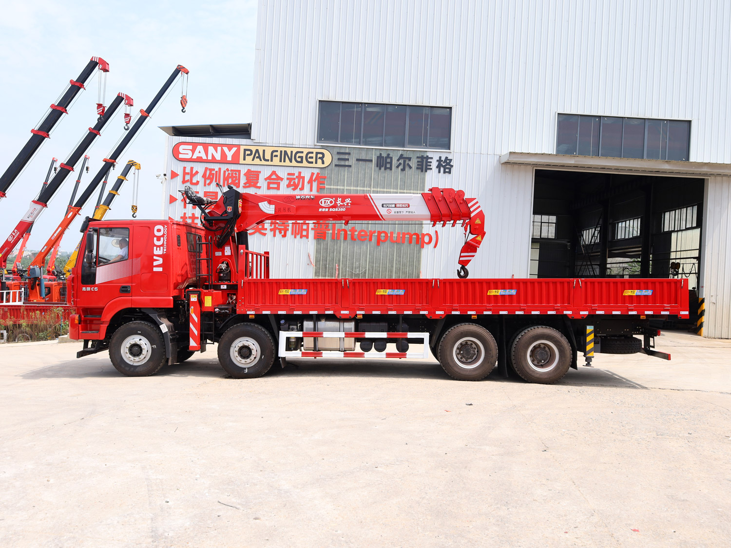 陜汽德龍新M3000駕駛室前四后八上裝三一14噸直臂式吊機(jī)