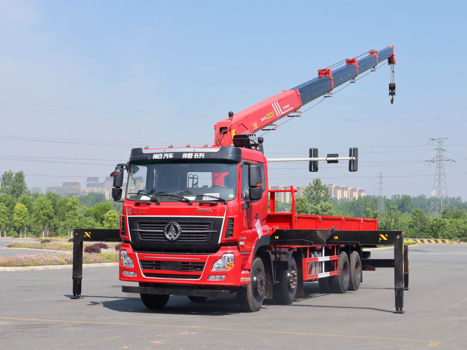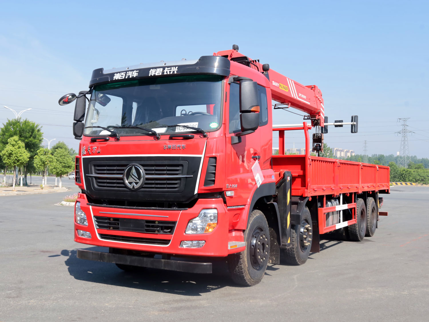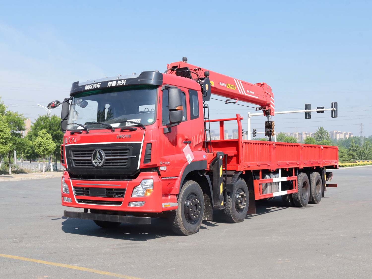 陜汽德龍新M3000駕駛室前四后八上裝三一14噸直臂式吊機