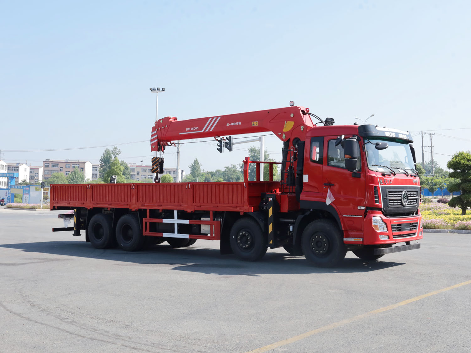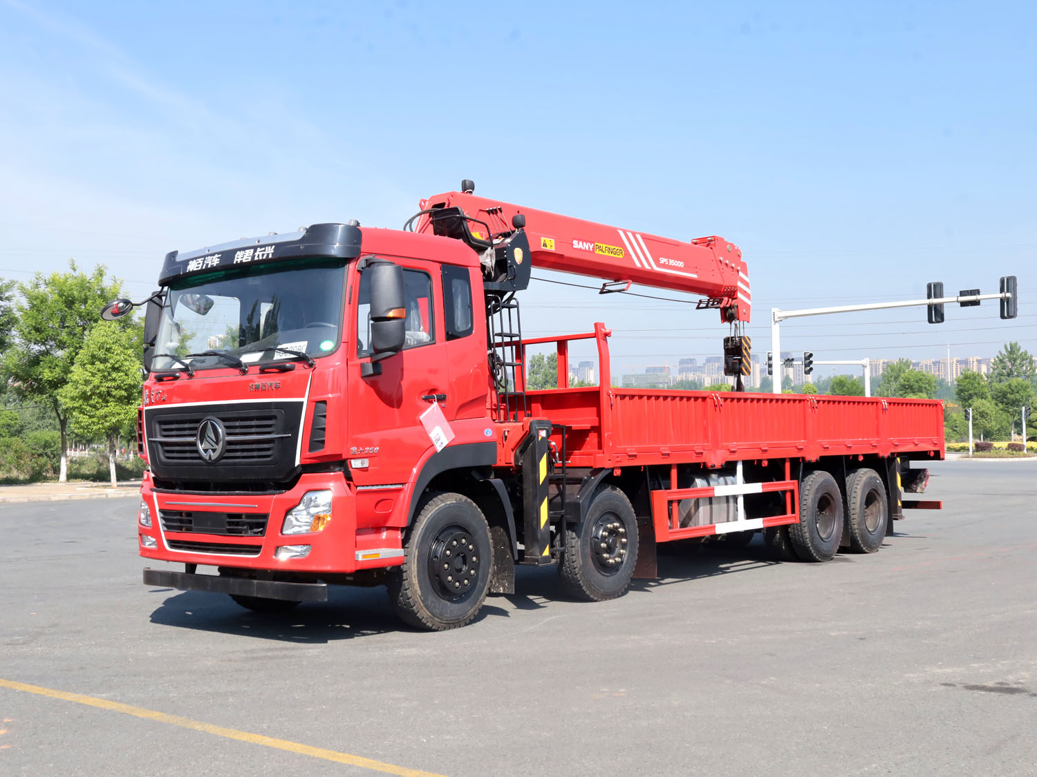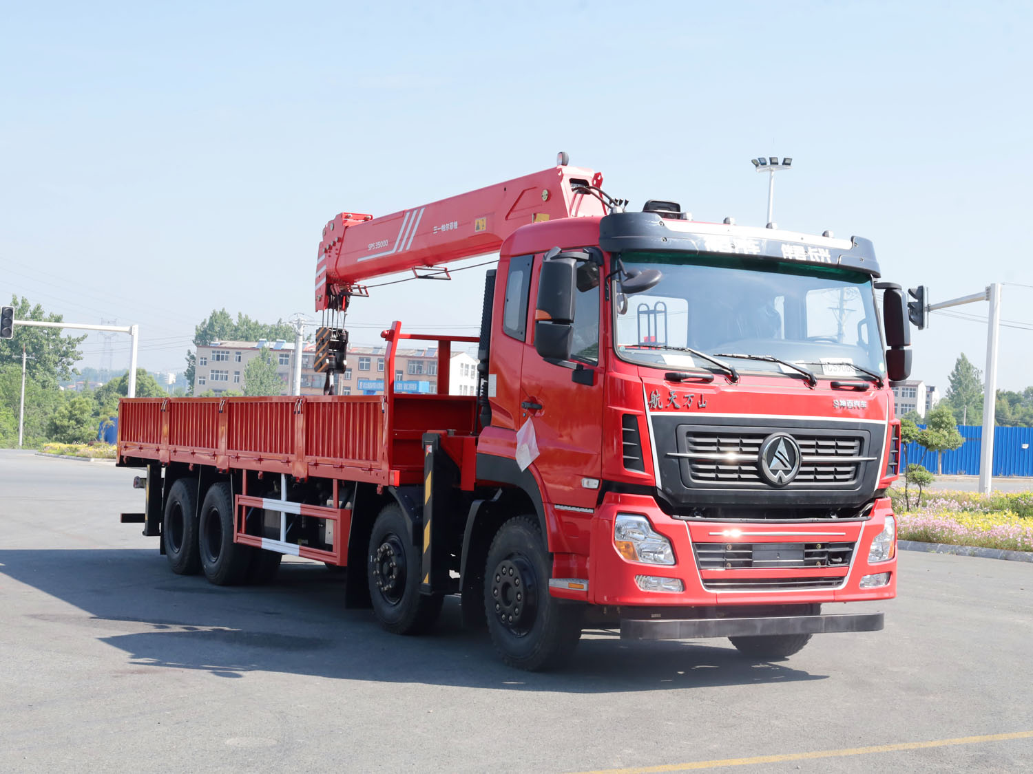 陜汽德龍新M3000駕駛室前四后八上裝三一14噸直臂式吊機