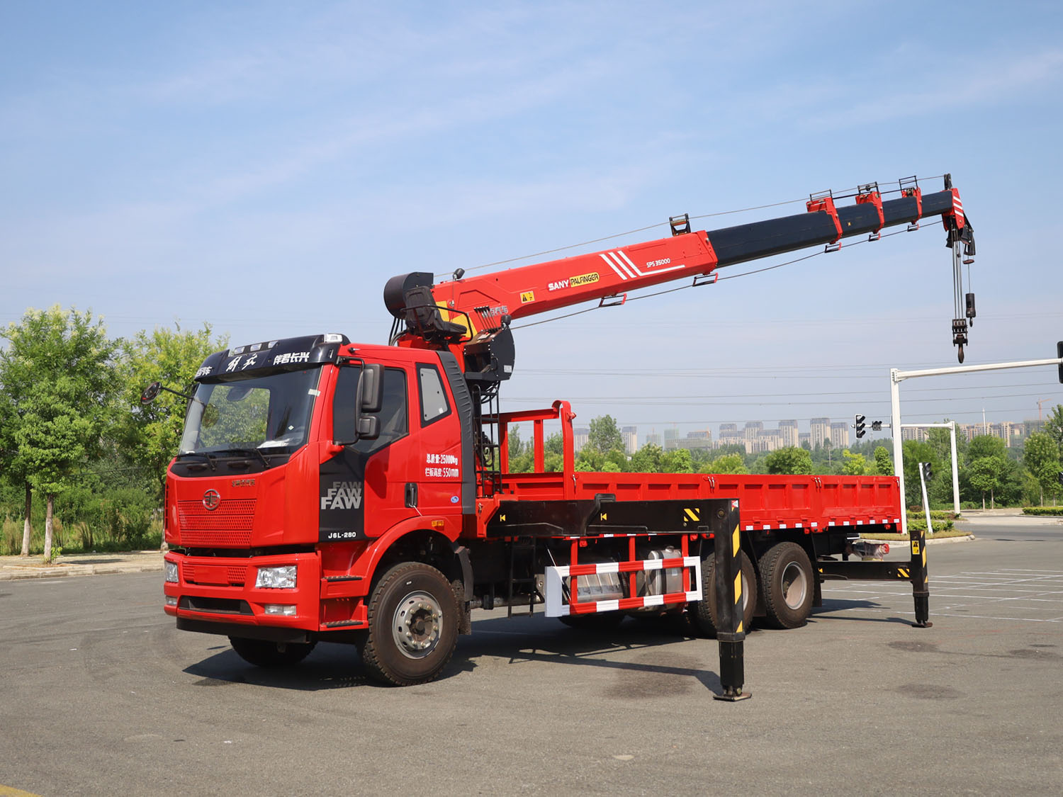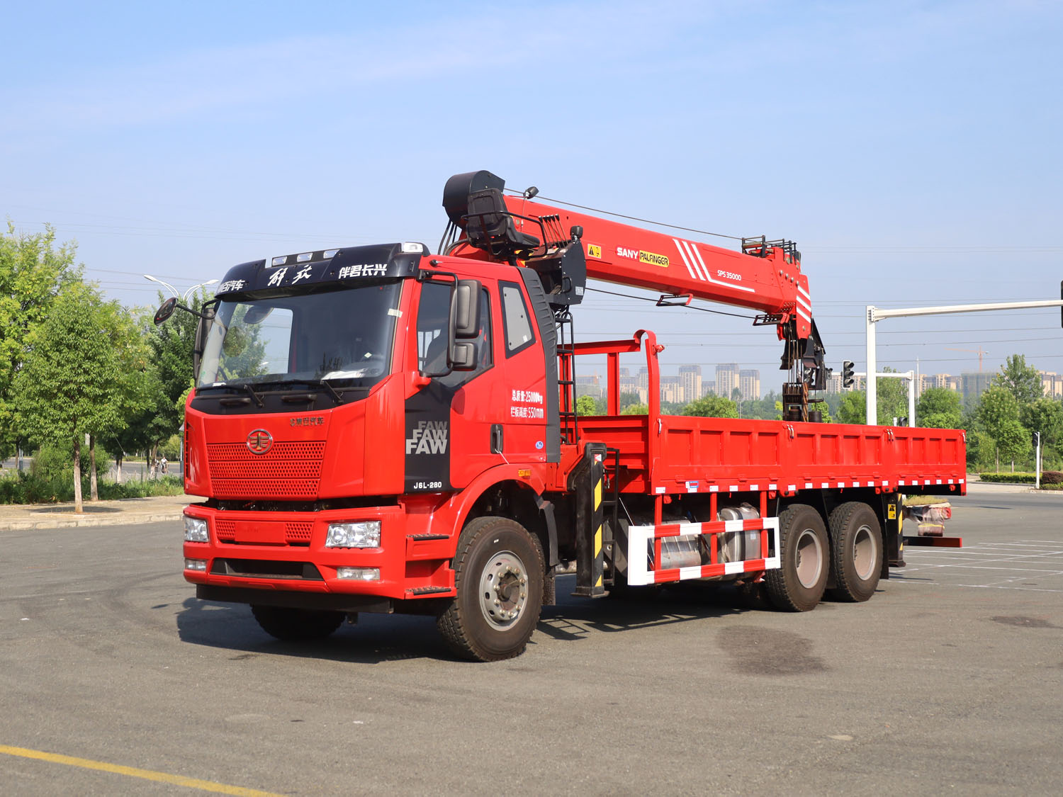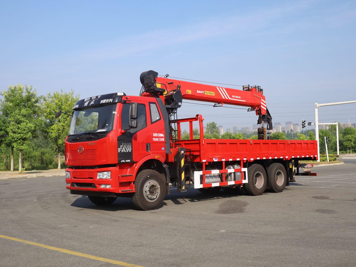 解放J6L后雙橋上裝三一14噸直臂式吊機(jī)(短軸距,帶副鉤)