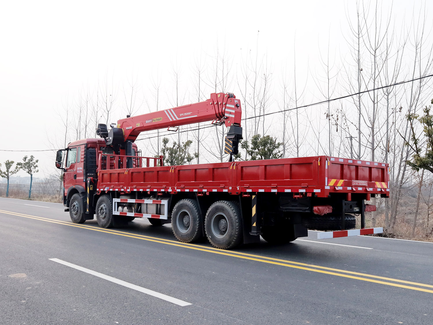 陜汽德龍新M3000駕駛室前四后八上裝三一14噸直臂式吊機
