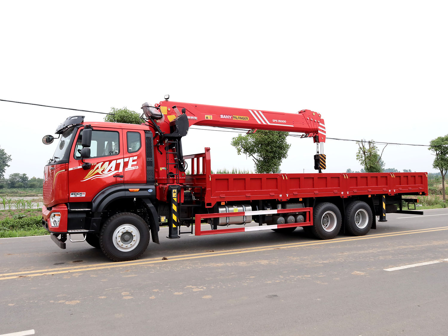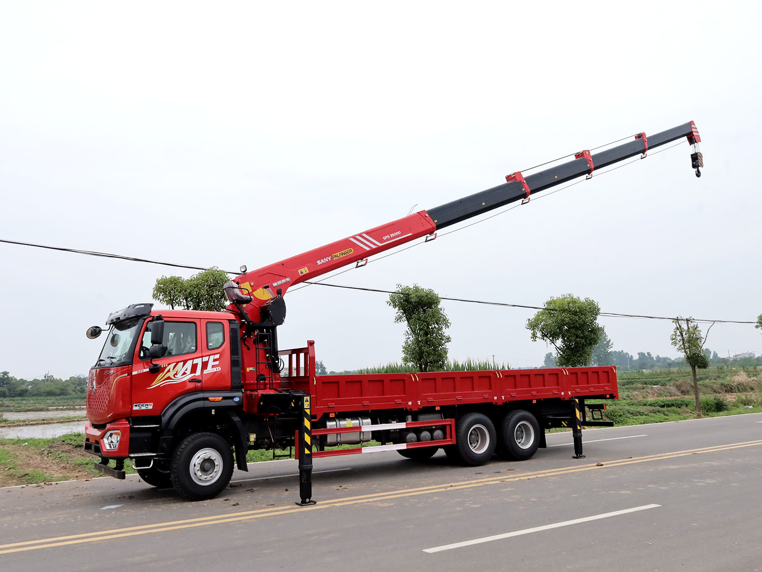 陜汽德龍新M3000駕駛室前四后八上裝三一14噸直臂式吊機