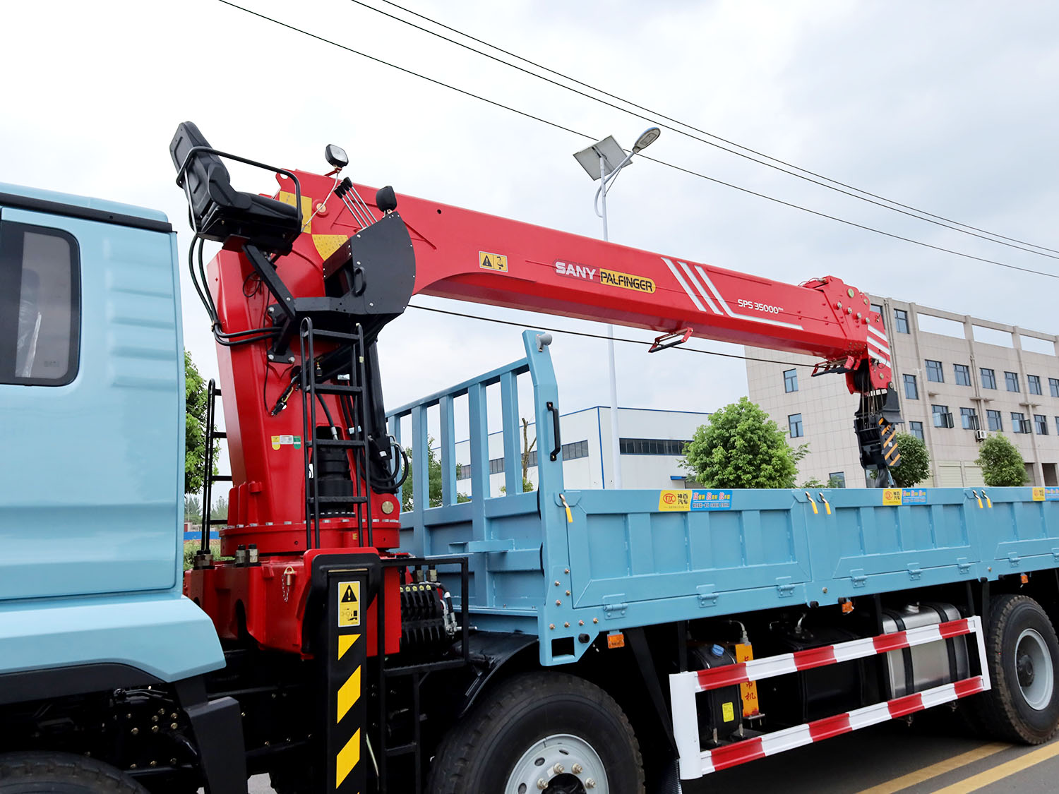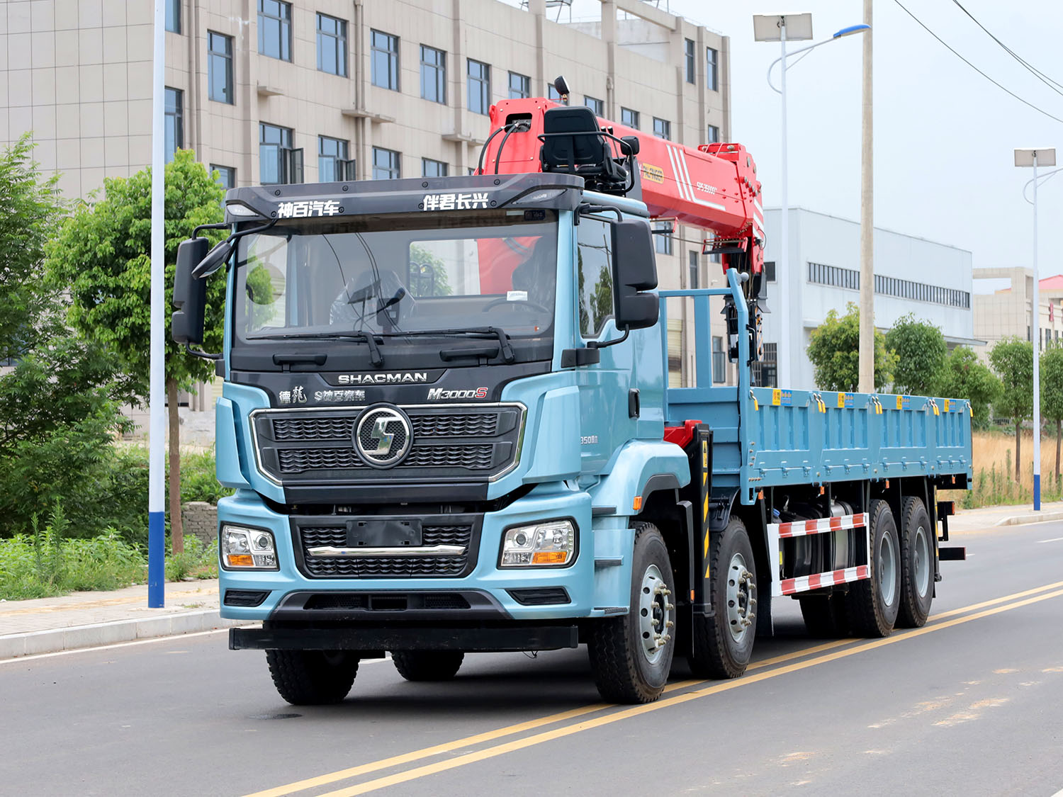陜汽德龍新M3000駕駛室前四后八上裝三一14噸直臂式吊機