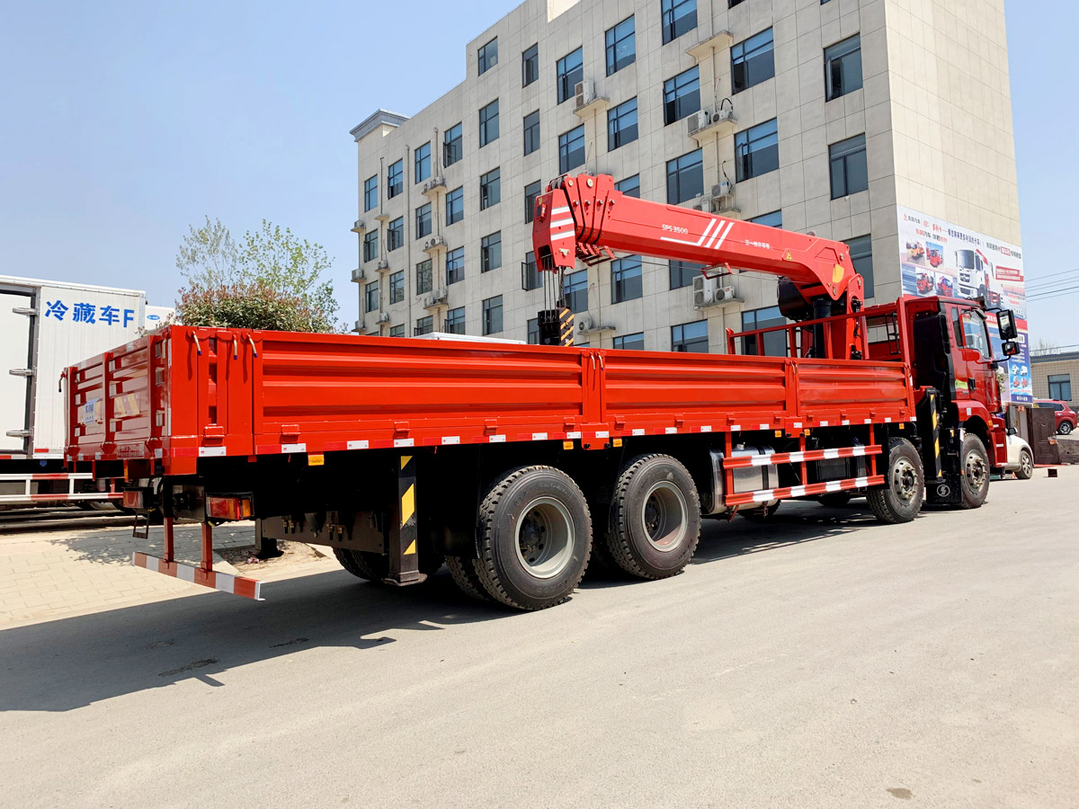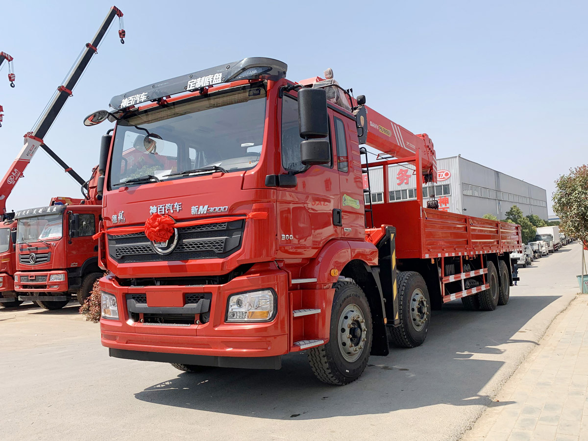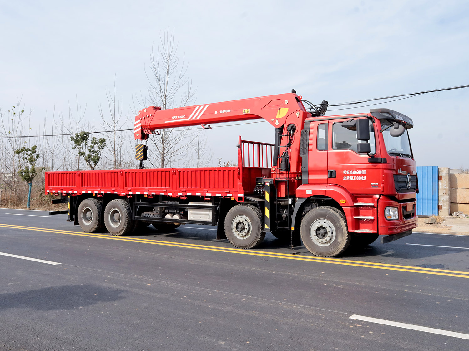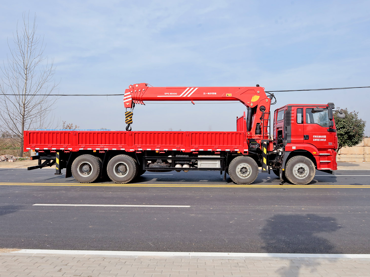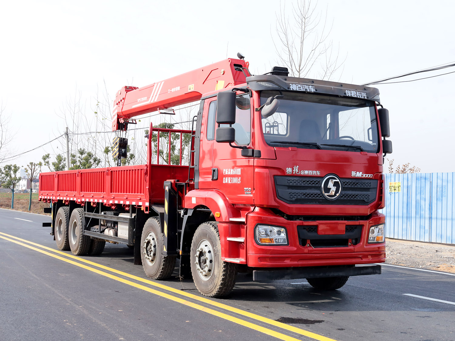 陜汽德龍新M3000駕駛室前四后八上裝三一14噸直臂式吊機(jī)