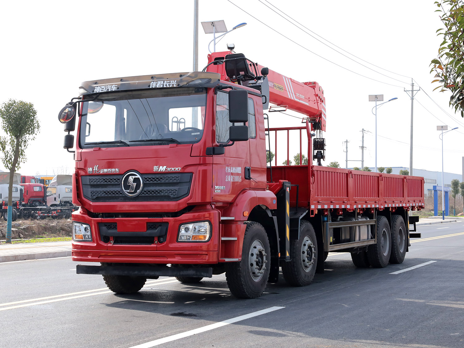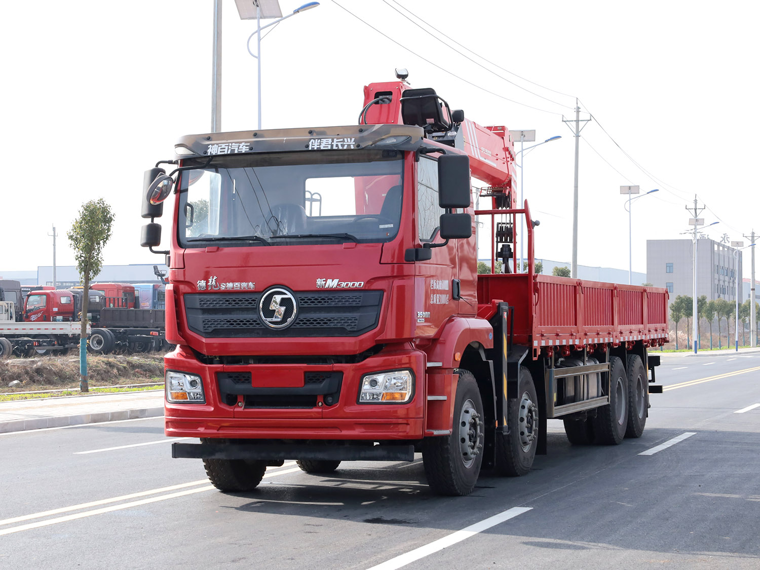 陜汽德龍新M3000駕駛室前四后八上裝長(zhǎng)興14噸直臂式吊機(jī)