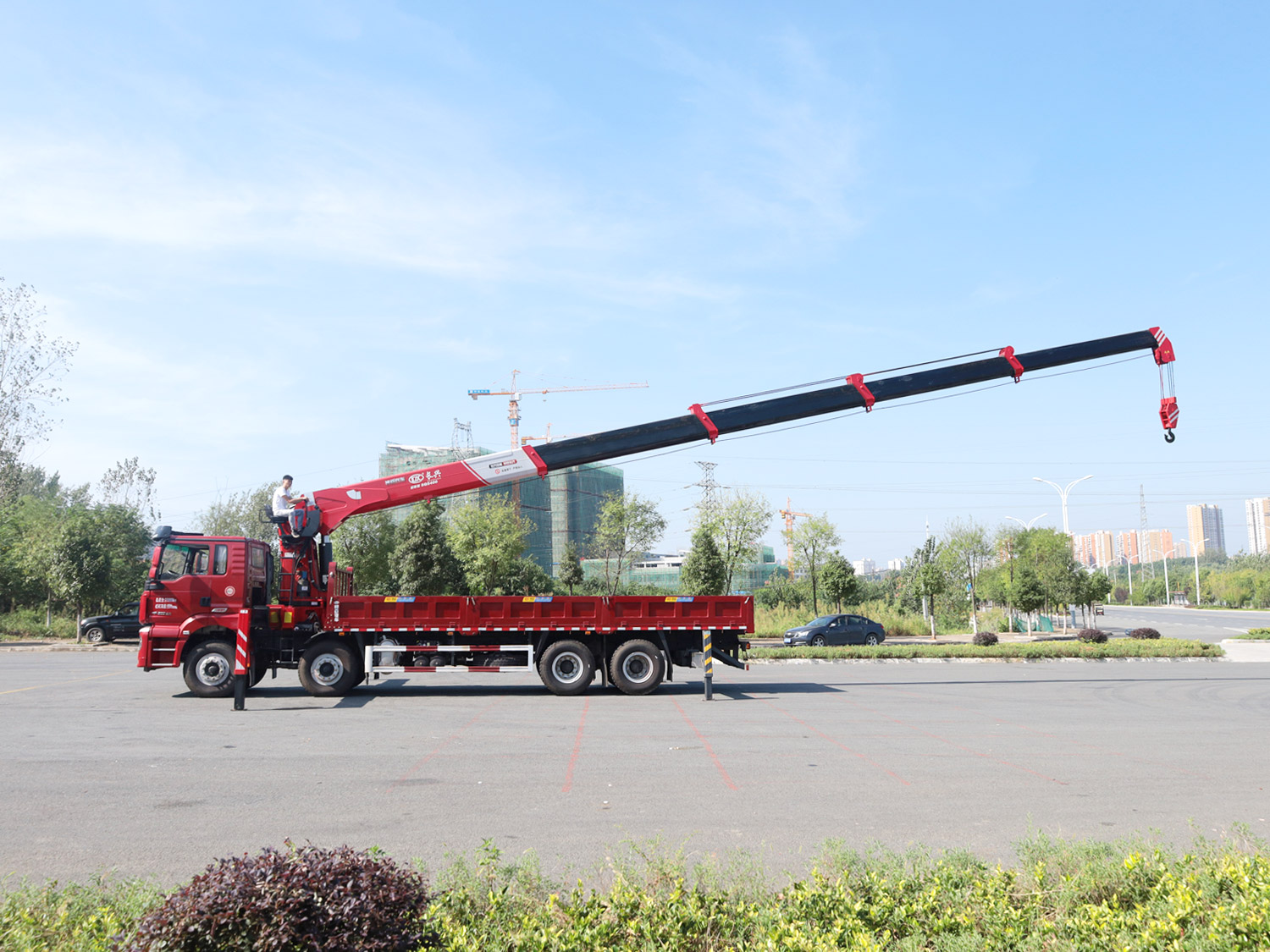 陜汽德龍新M3000駕駛室前四后八上裝三一16噸直臂式吊機