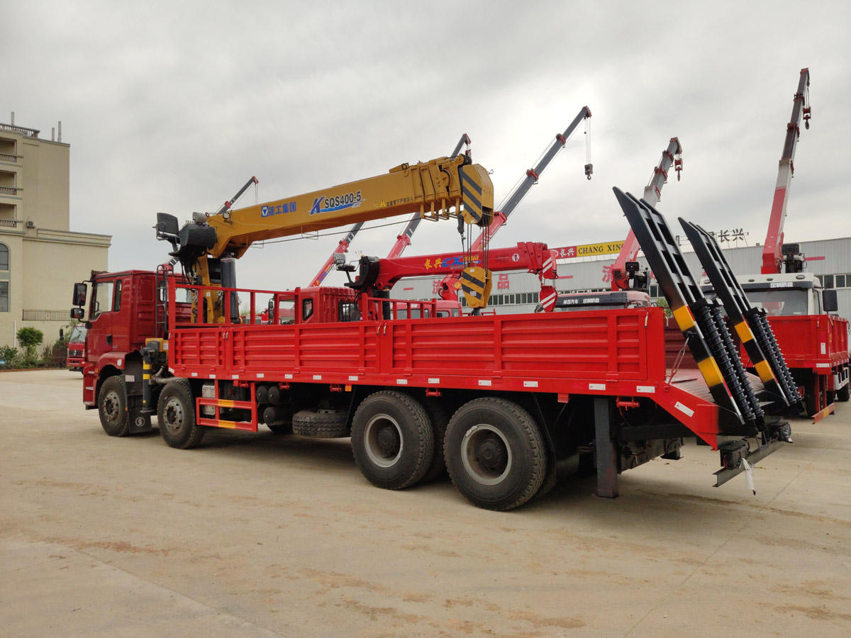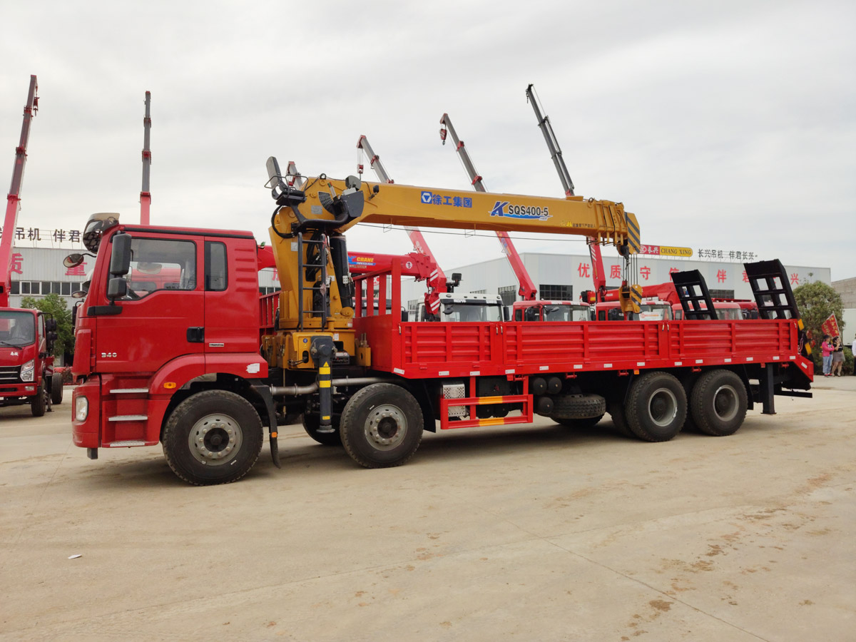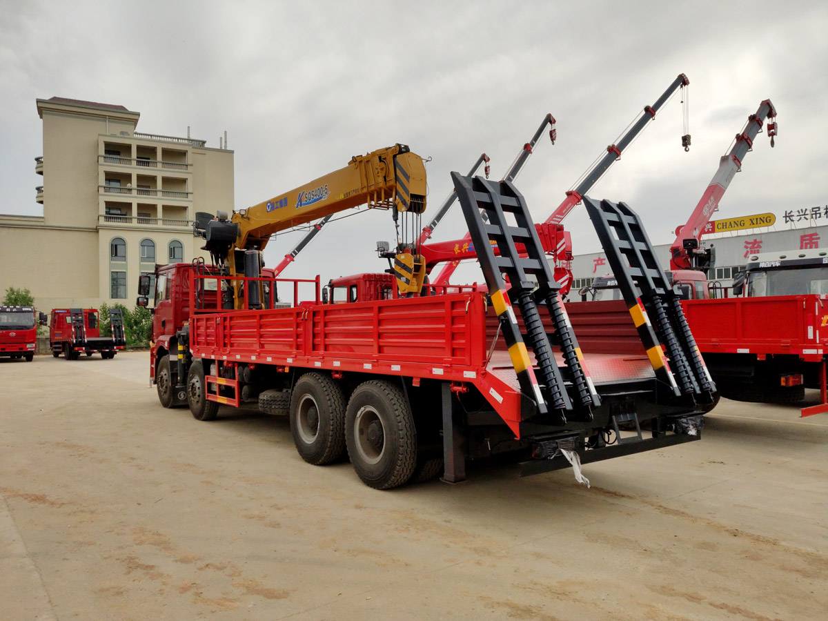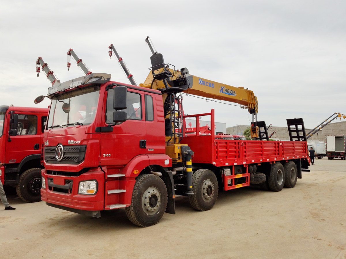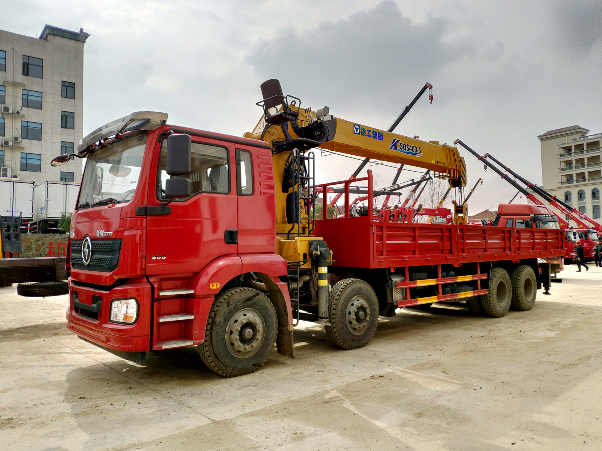 陜汽德龍新M3000駕駛室前四后八上裝三一16噸直臂式吊機(jī)