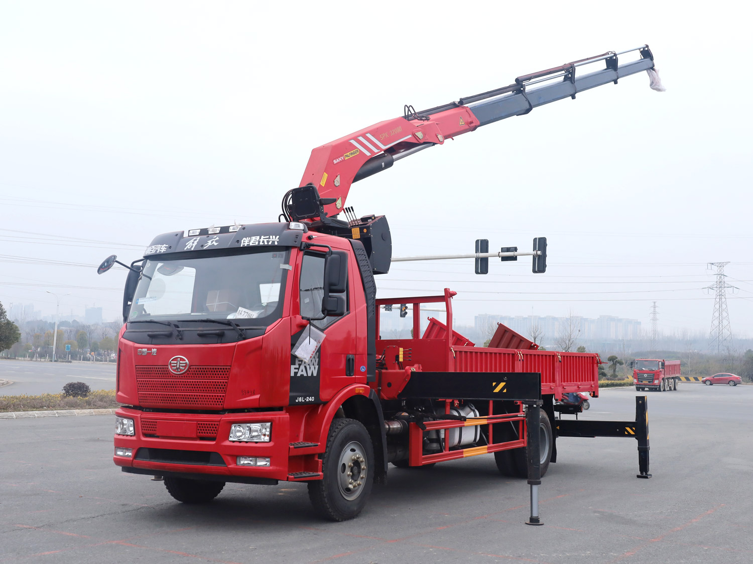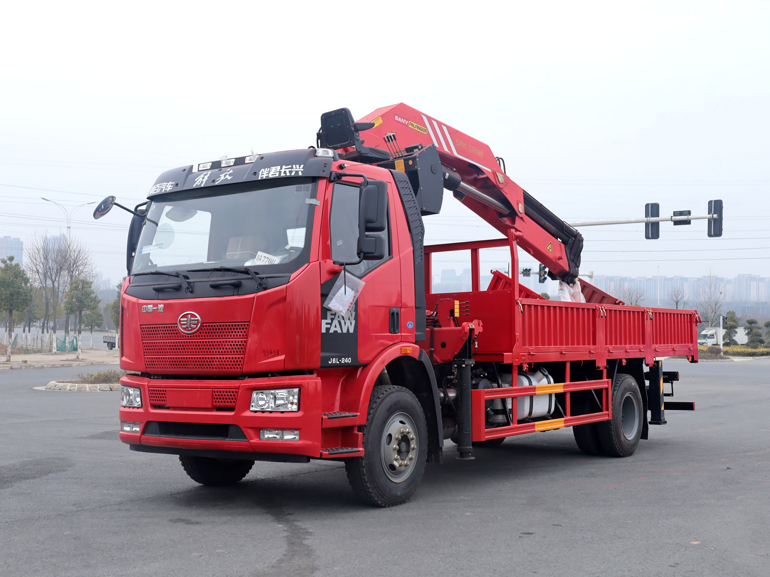 解放悍V駕駛室前四后八上裝三一25噸折臂式吊機