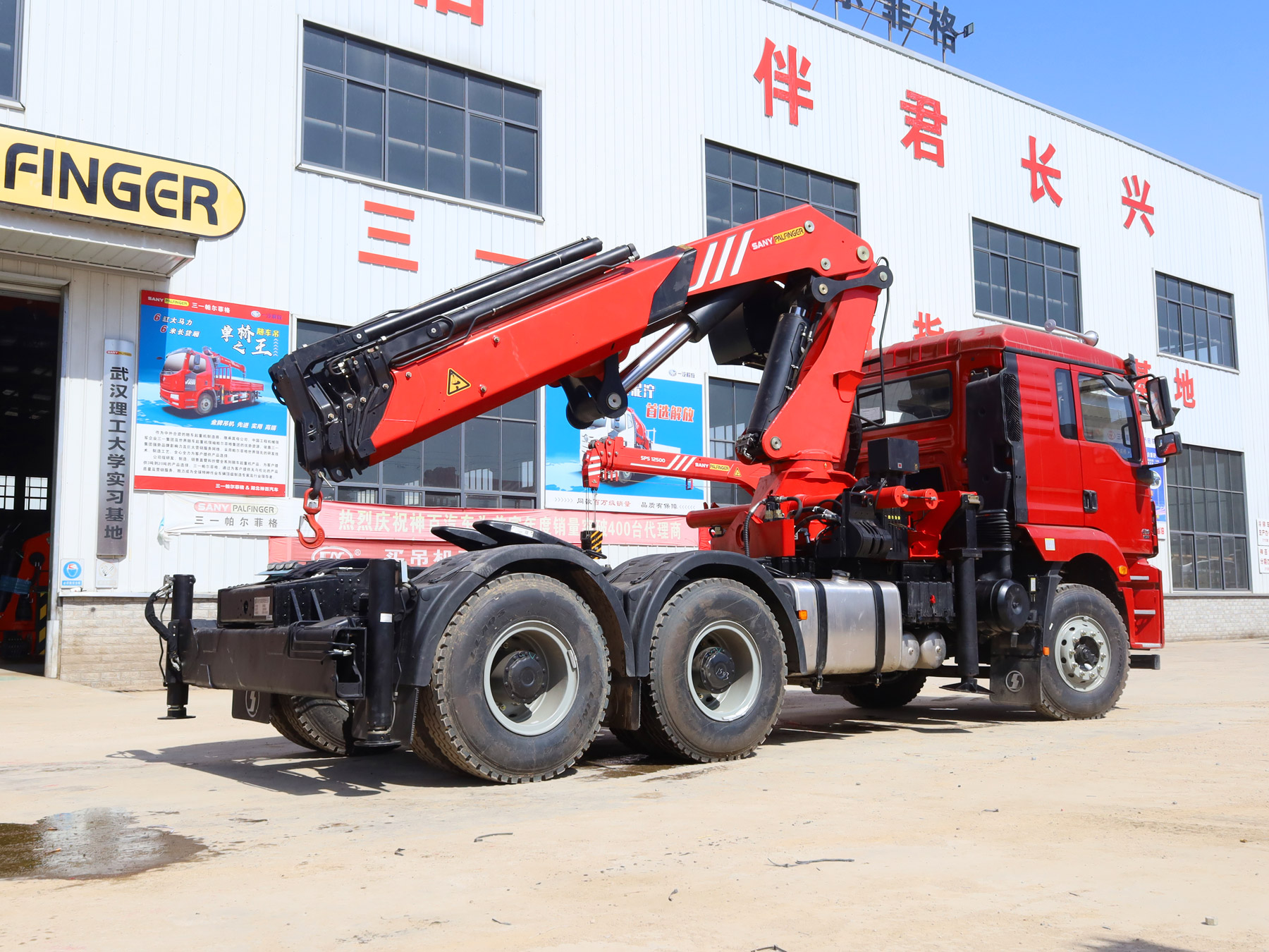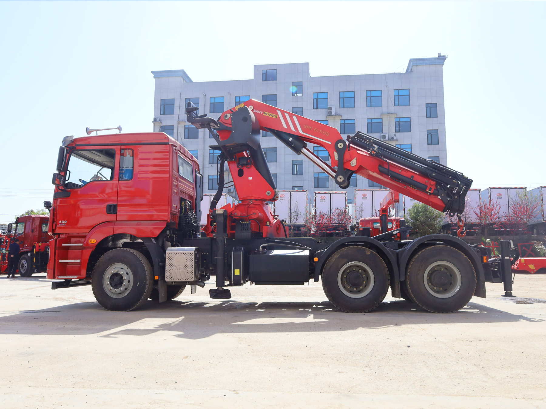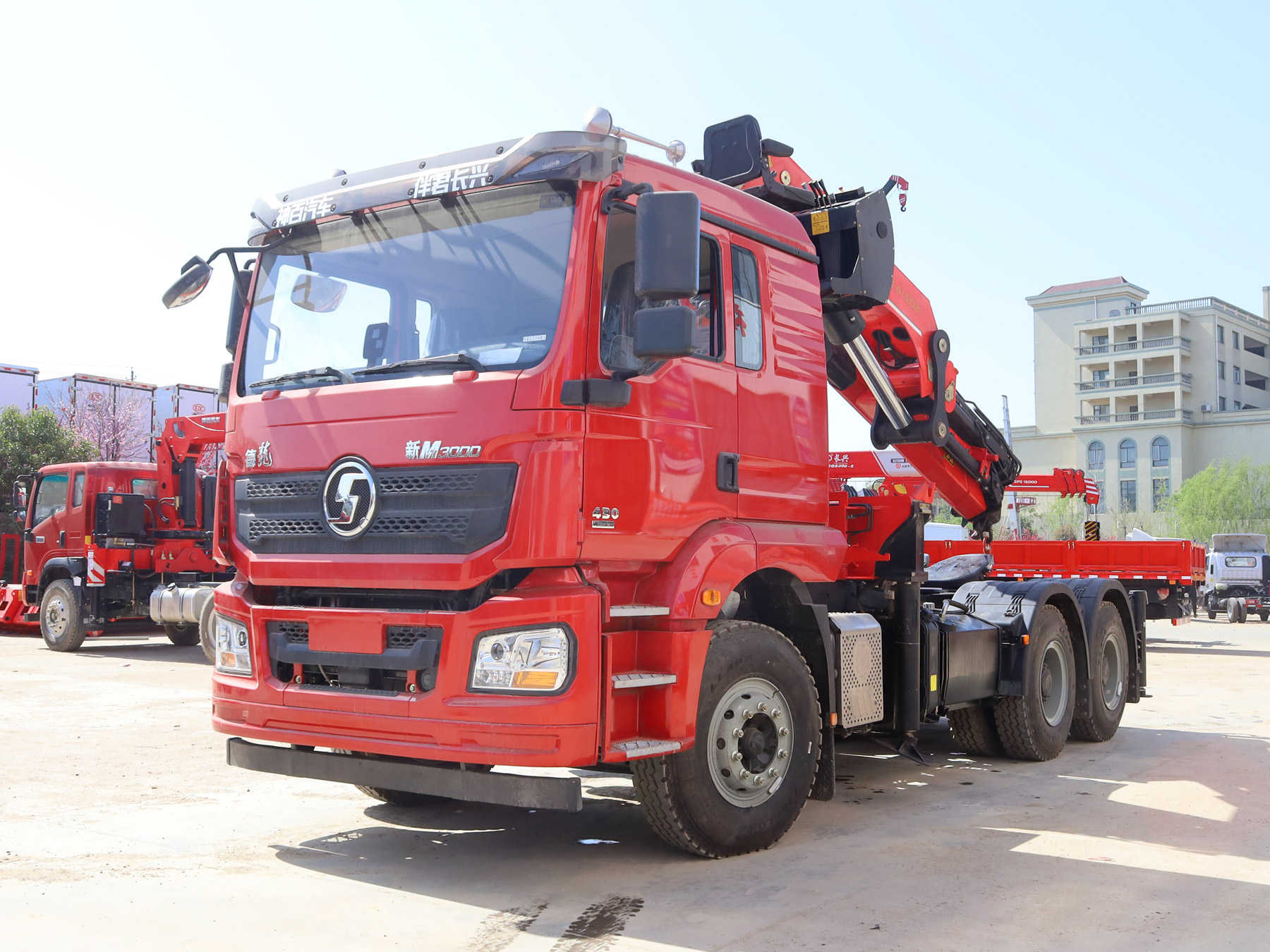 陜汽德龍新M3000駕駛室前四后八上裝三一16噸折臂式吊機