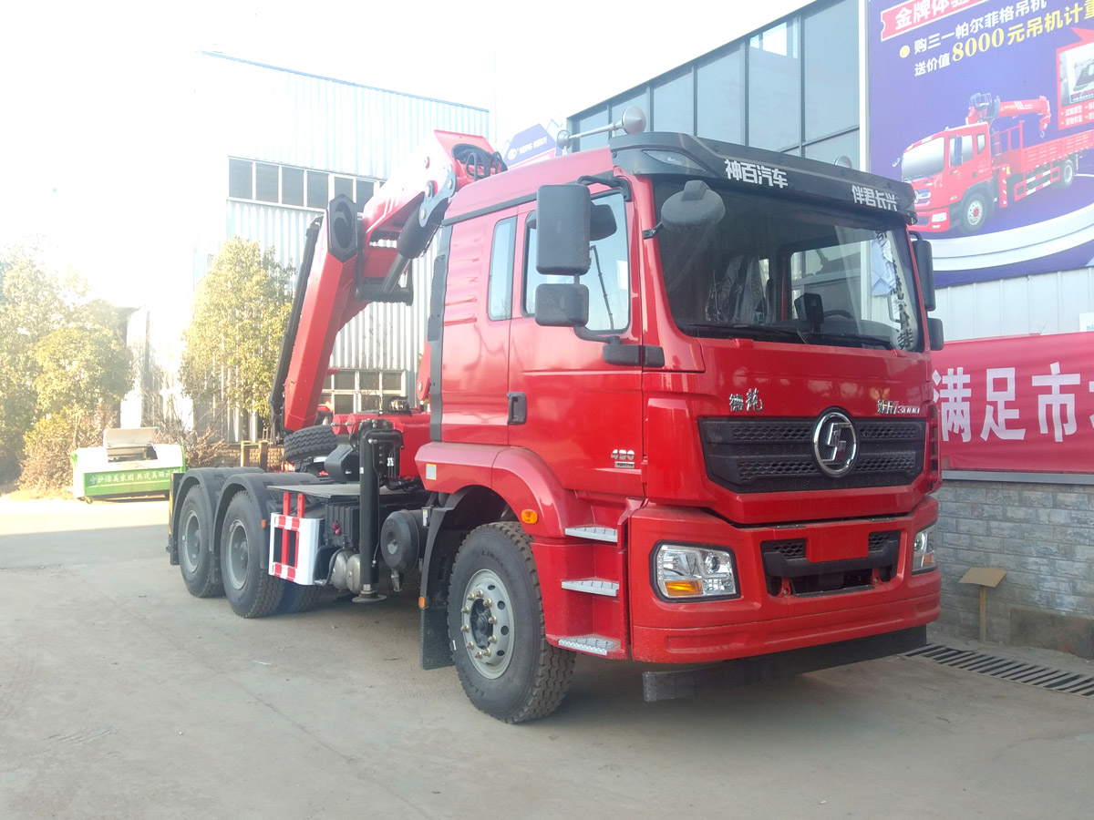 陜汽德龍新M3000駕駛室前四后八上裝三一16噸折臂式吊機