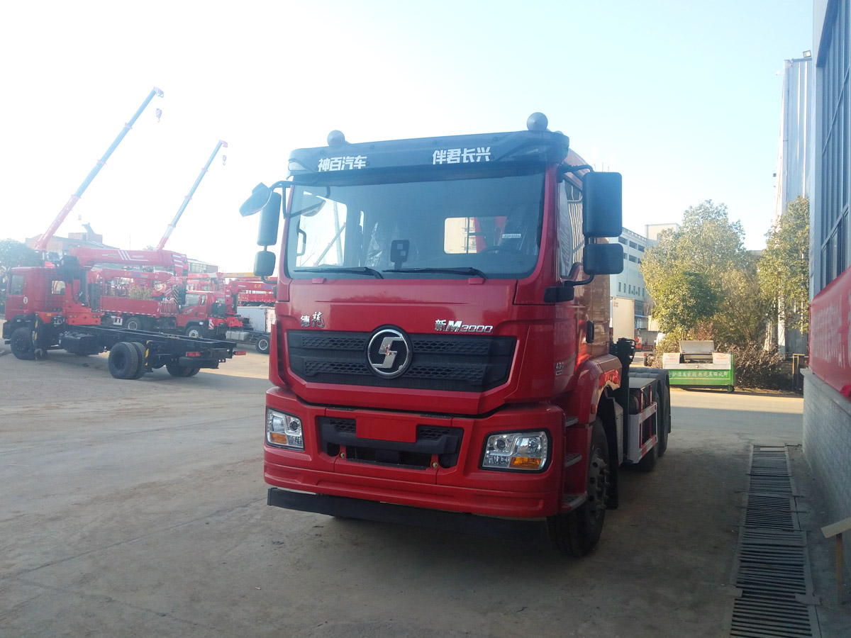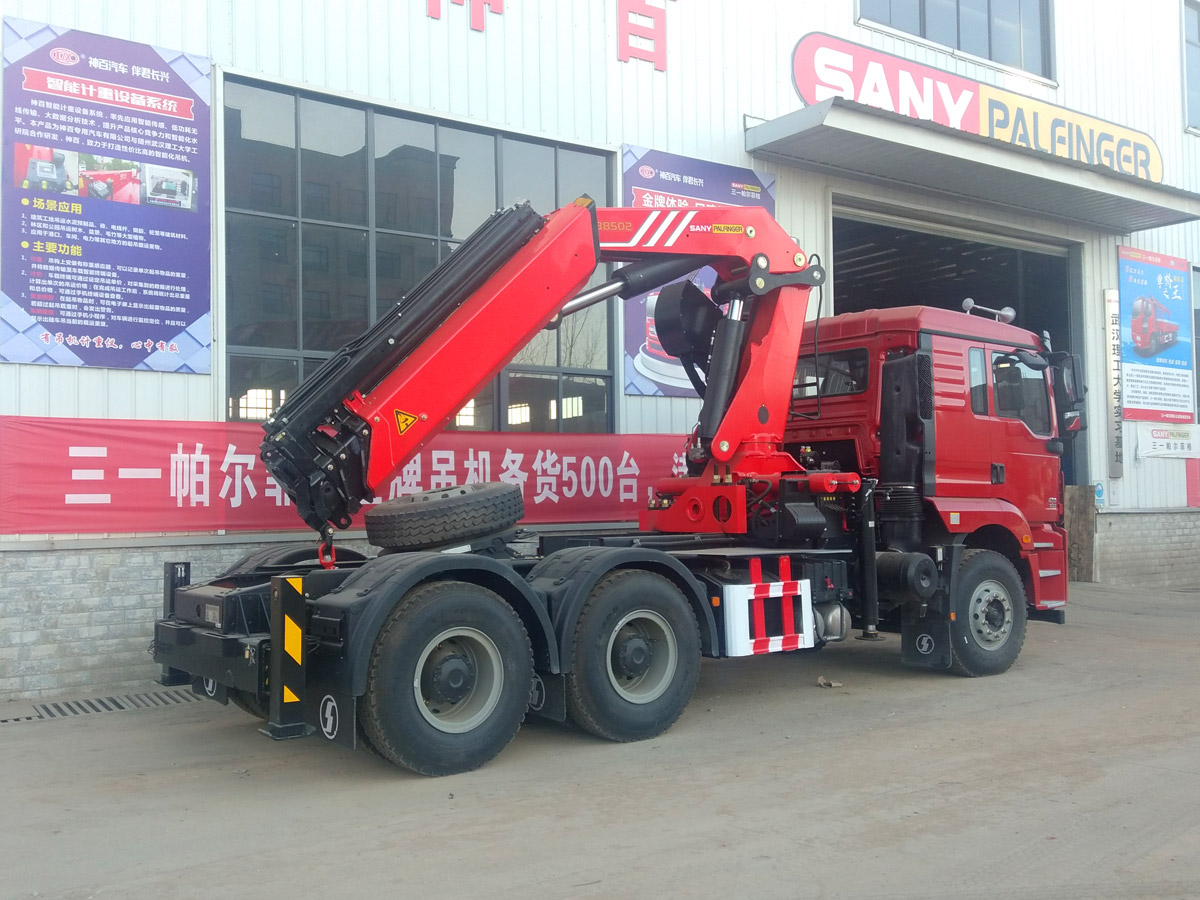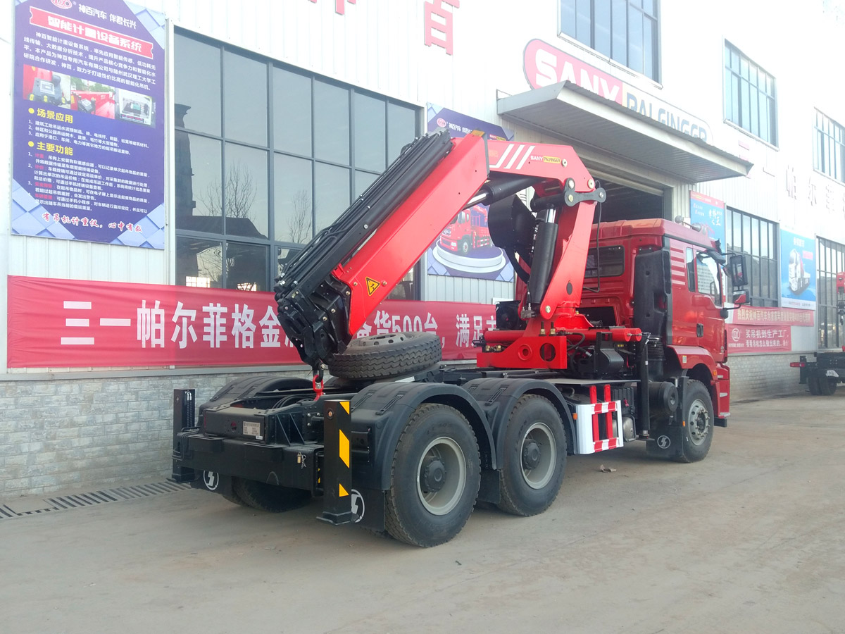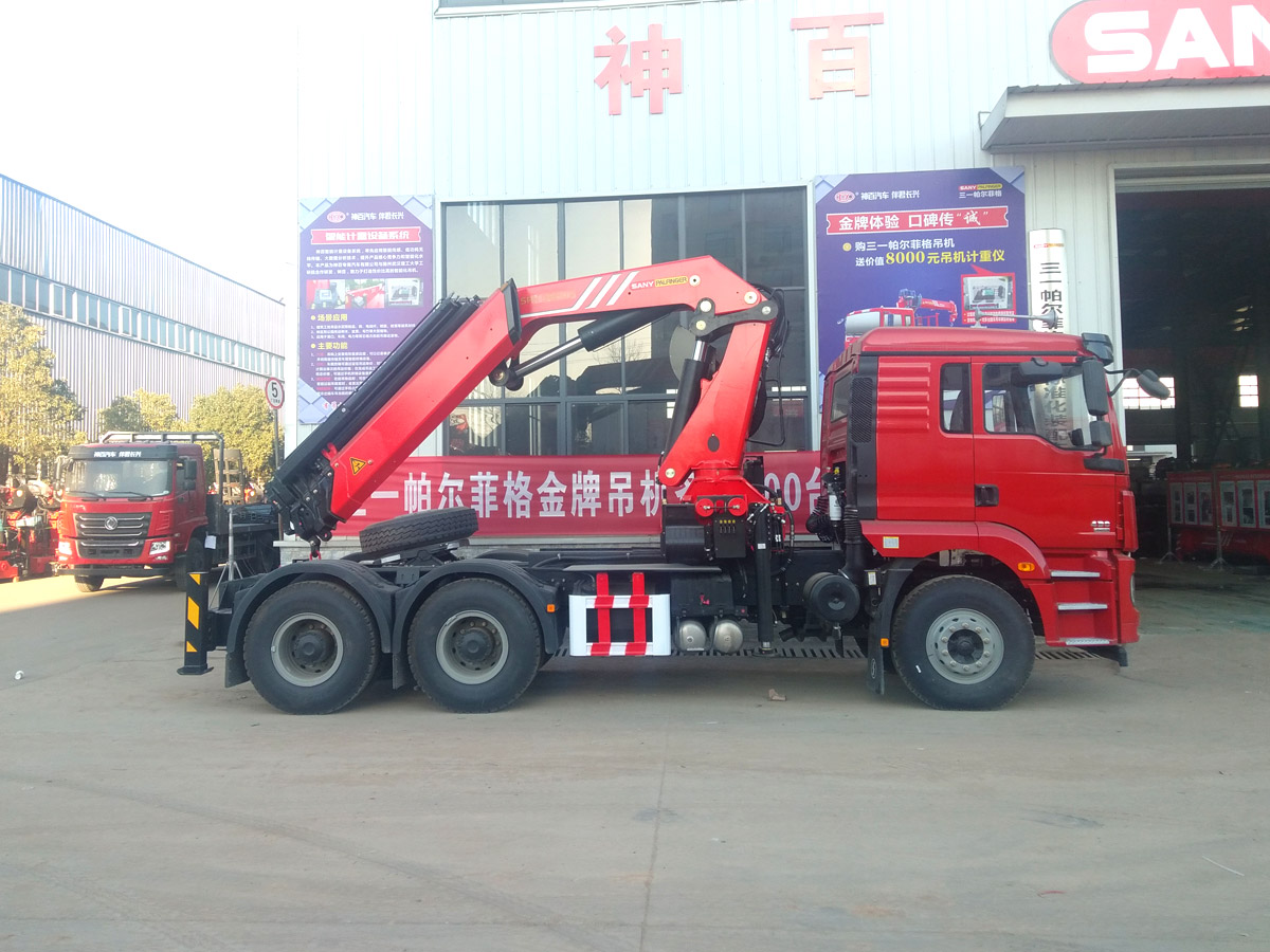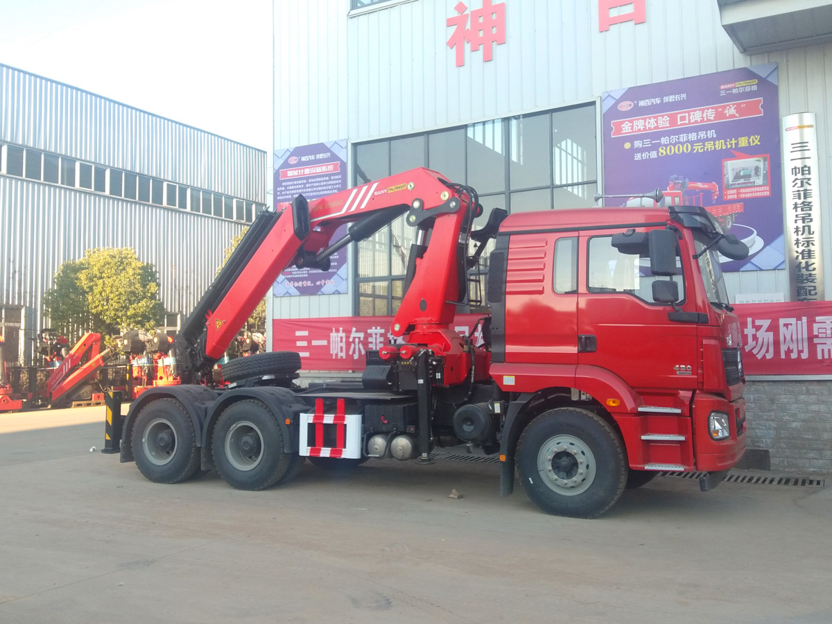陜汽德龍新M3000牽引頭上裝三一19噸折臂式吊機