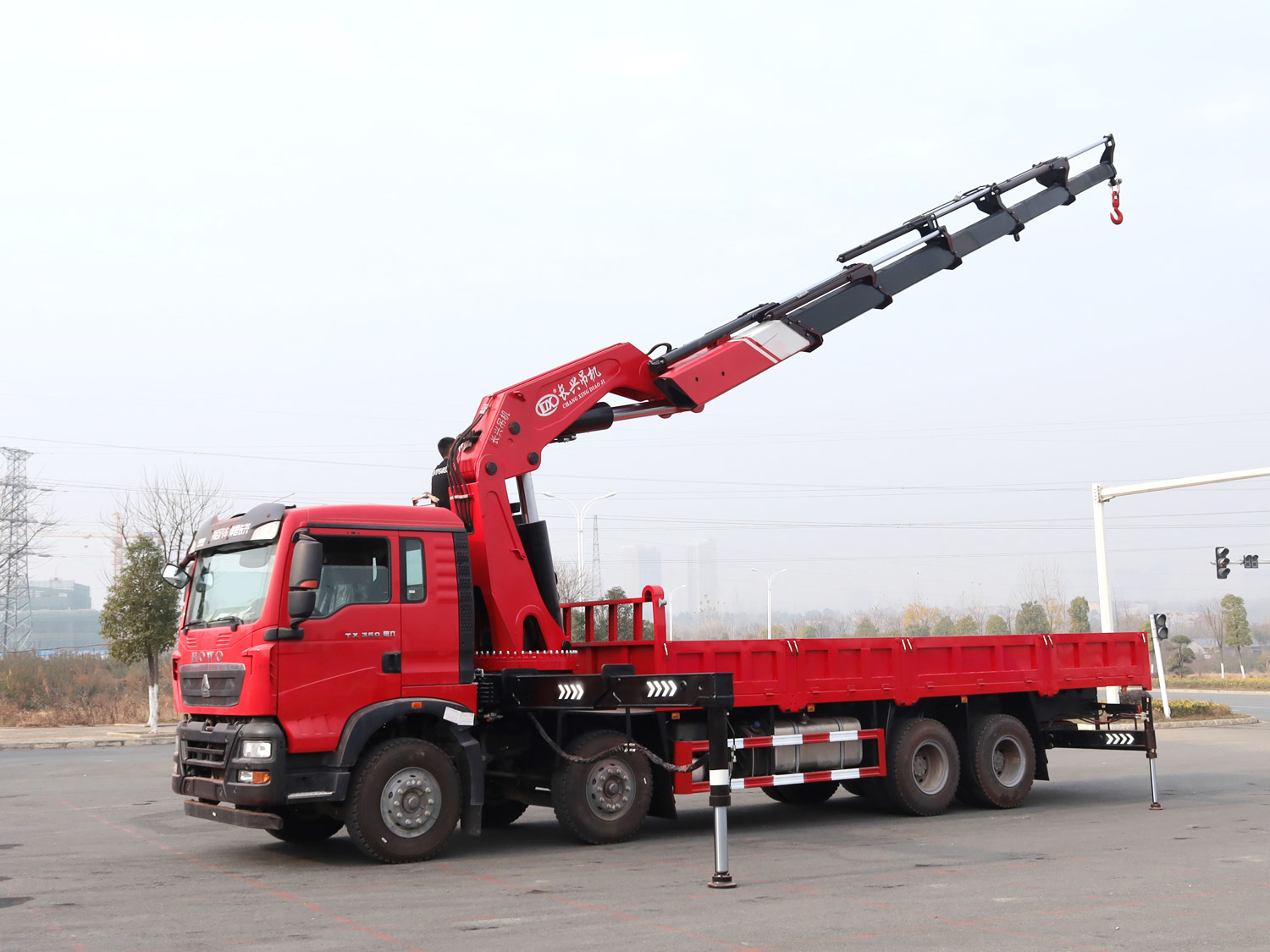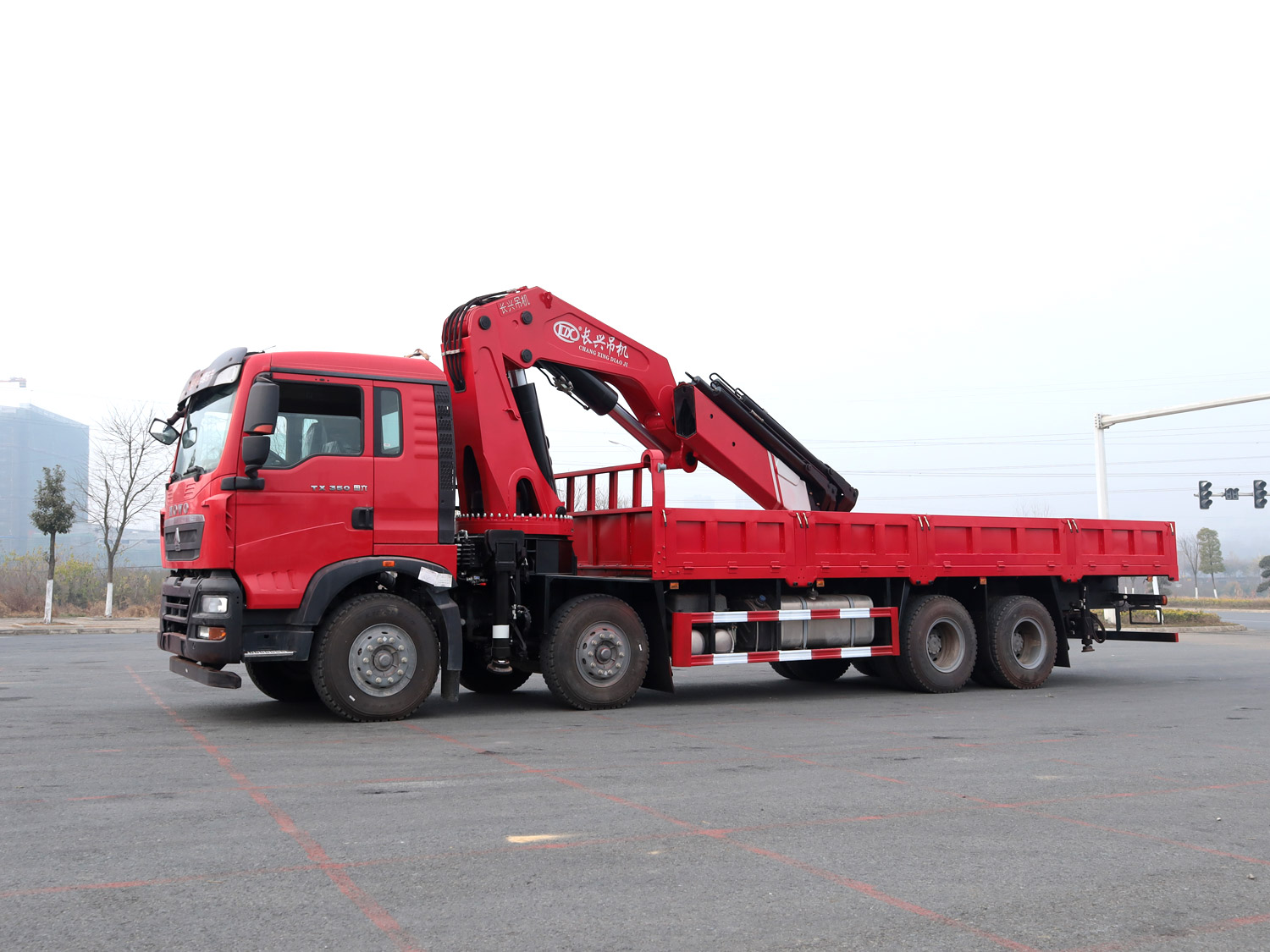 陜汽德龍新M3000駕駛室前四后八上裝長興25噸折臂式吊機