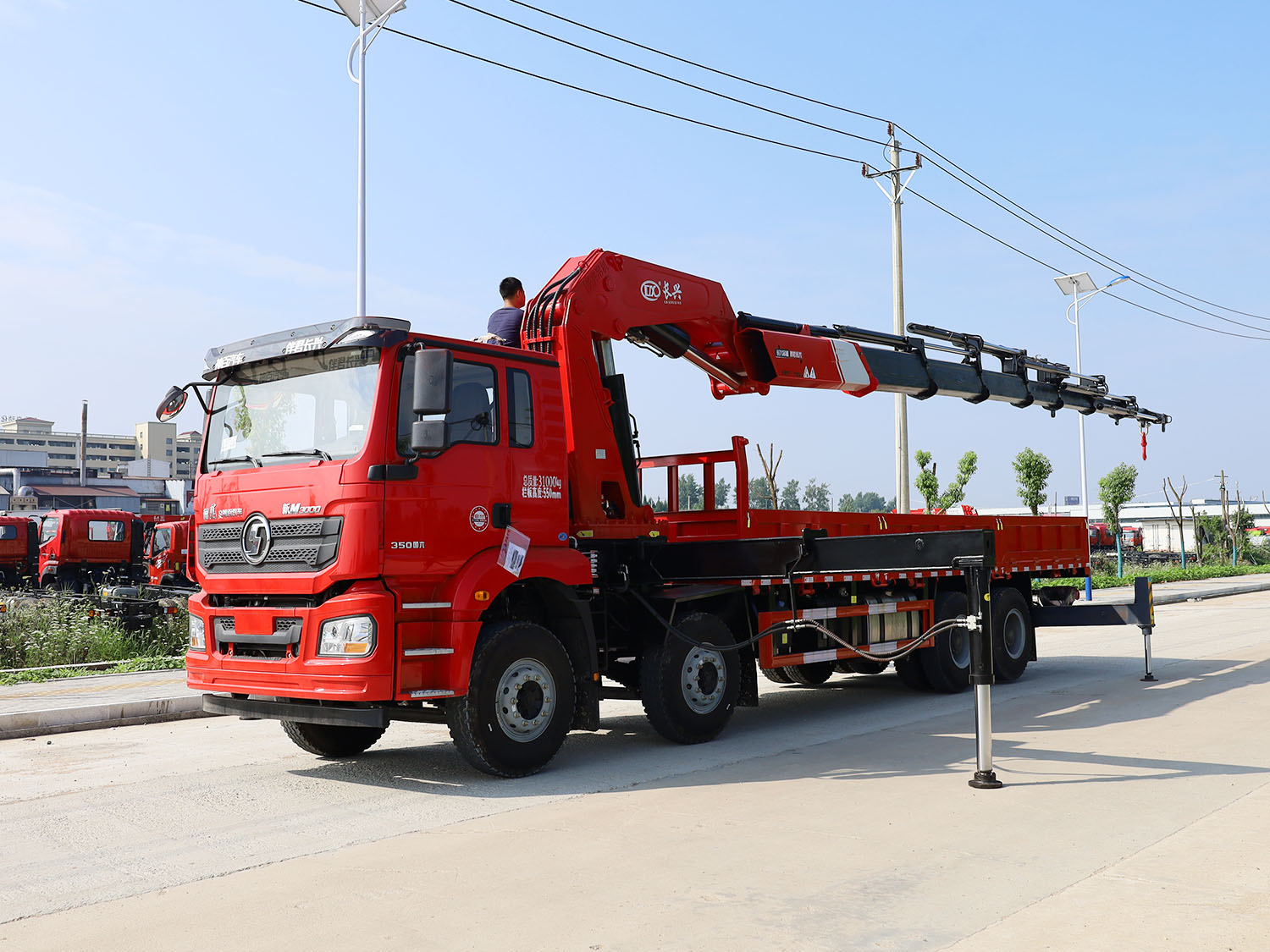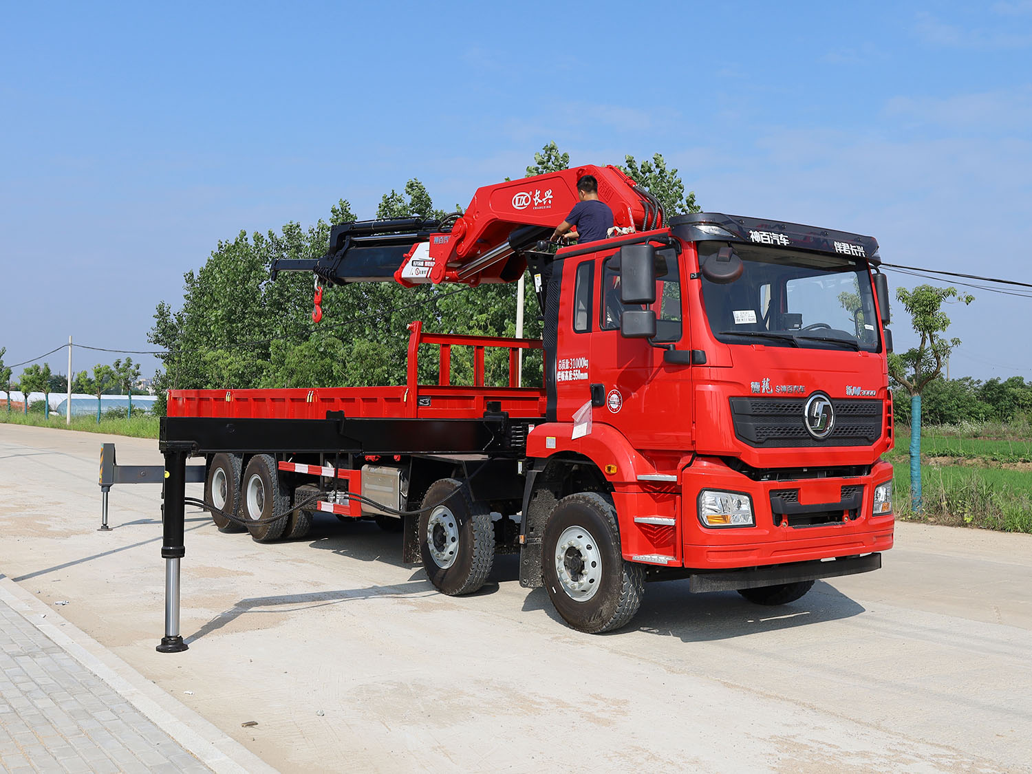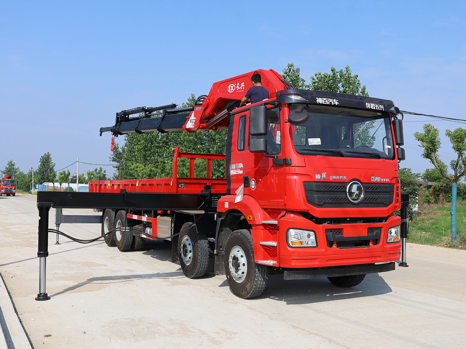 陜汽德龍新M3000駕駛室前四后八上裝長興35噸折臂式吊機