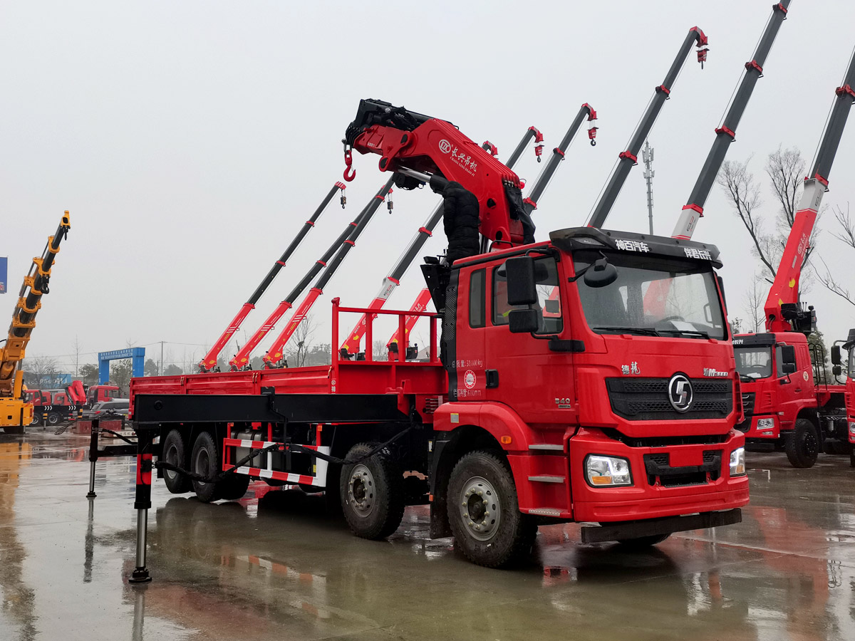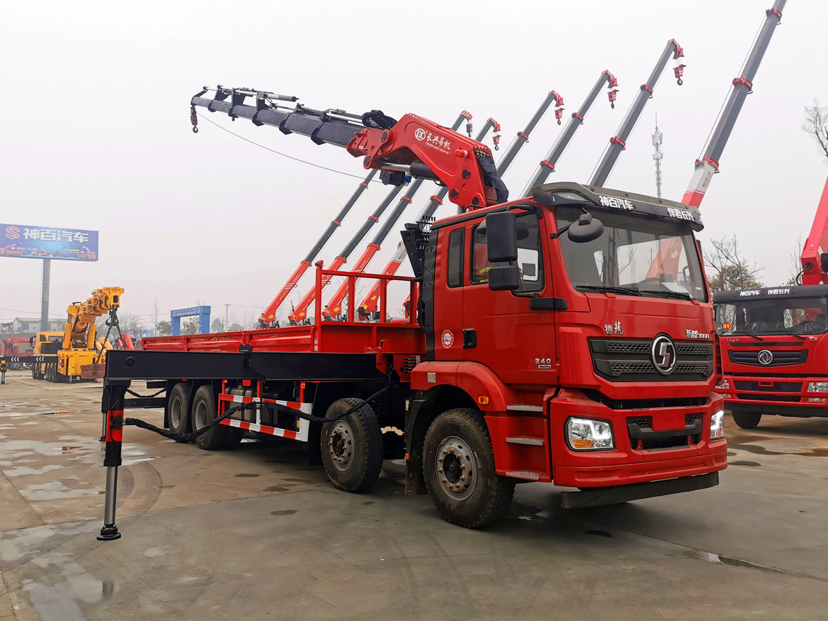 陜汽德龍新M3000駕駛室前四后八上裝長興35噸折臂式吊機
