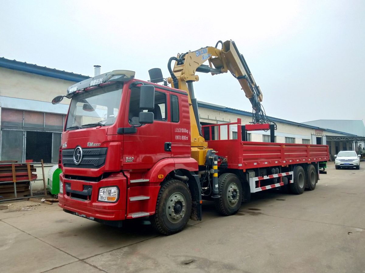 陜汽德龍新M3000駕駛室前四后八上裝徐工12噸折臂式吊機(jī)(