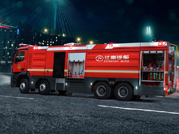 該泡沫消防車,整車主要由梅賽德斯-奔馳 Arocs 4158型消防車專用底盤、**乘員室、水罐、泵室、泵送系統、智能集成**系統、水**、水炮、隨車消防器材以及其他附屬**等組成。整車改裝后載荷分配均勻,質心位置和穩定性計算**,內部空間布局合理,能充分滿足操作人員的使用要求。