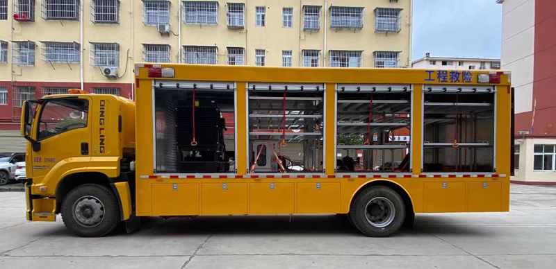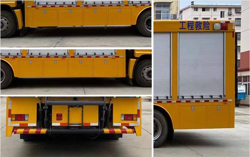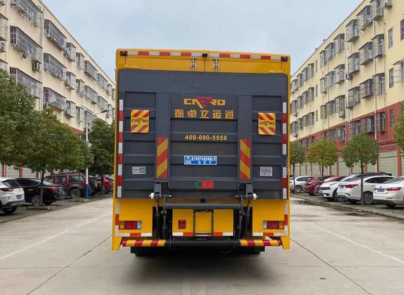 | 該車專用裝置:裝有靜音車廂,發電機組,電纜卷盤,控制系統等;用于應急搶險,并具備移動電源功能,貨架,用于裝備器材和救援等專用設備;車廂頂部封閉且不可開啟;整車長/軸距/后懸對應關系為(mm):9835/5550/2950,9535/5550/2650,8485/4500/2650,8185/4500/2350,7585/3900/2350,7285/3900/2050;側防護由車身結構代替,后防護材質為Q235A碳鋼,采用焊接加螺栓連接,斷面尺寸為φ120mm,防護下邊緣離地高500mm;尾板、上下坡道收起狀態的水平長度(mm):295,尾板質量為540kg;選裝限速裝置,限速89km/h;ABS及控制器型號為:APG3550500H1,生產廠家為:浙江亞太機電股份有限公司;ABS控制器型號:ABS8.8 ECU 24V,生產廠家為:東科克諾爾商用車制動系統(十堰)有限公司. |