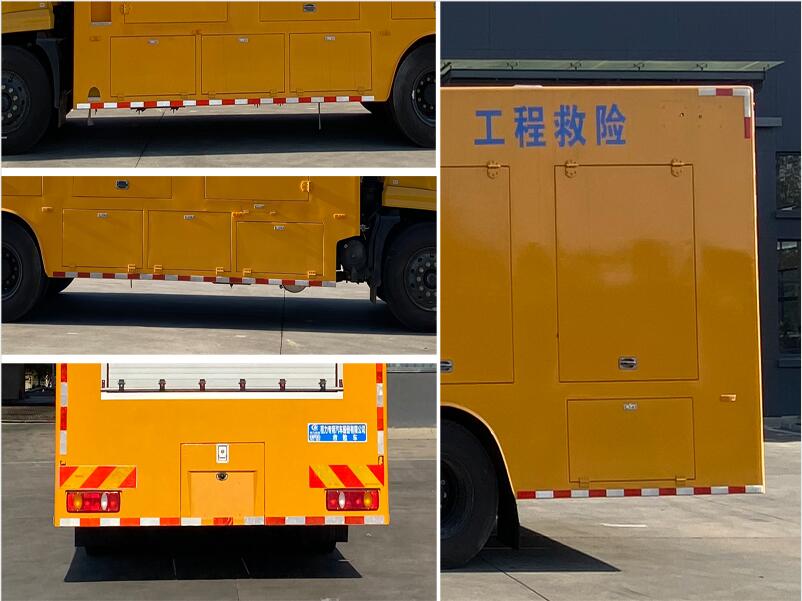 | 該車型用于應急供電,應急救險時排水作業,該車配備的專用裝置有發電機機組,空壓機、電焊機、升降照明燈、液壓支腿、潛污泵、控制柜以及應急搶險搶修時必備的光源,氣源,電源設備等工具; 車廂頂部封閉不可開啟; 整車長度/前懸/軸距/后懸的對應關系為(mm):7380/1400(1430)/3800/2180(2150),7680/1400(1430)/3800/2480(2450),7530/1400(1430)/3950/2180(2150),7830/1400(1430)/3950/2480(2450),7780/1400(1430)/4200/2180(2150),8080/1400(1430)/4200/2480(2450),8080/1400(1430)/4500/2180(2150),8380/1400(1430)/4500/2480(2450),8280/1400(1430)/4700/2180(2150),8580/1400(1430)/4700/2480(2450),8580/1400(1430)/5000/2180(2150),8880/1400(1430)/5000/2480(2450),9180/1400(1430)/5000/2780(2750),9480/1400(1430)/5000/3080(3050); 防護材料:側后防護由車身結構代替,后防護下邊緣離地高500mm; 裝有限速裝置,限速89km/h; ABS型號/生產廠家:3631010-C2000/東科克諾爾商用車制動系統(十堰)有限公司,ABS 8/東科克諾爾商用車制動系統(十堰)有限公司, 4460046450/威伯科汽車控制系統(中國)有限公司,J ABS/焦作博瑞克控制技術有限公司; 選裝外觀樣式. |