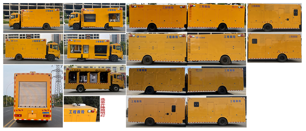 | 1、該車專用裝置:裝有靜音車廂,發電機組,電纜卷盤,控制系統等;用于應急搶險,并具備移動電源功能;2、隨底盤選裝駕駛室;3、該車選用3800mm,4500mm,4700mm,5000mm,5800mm軸距底盤改裝,總質量/整備質量/額定載質量對應關系為(kg):17700/17570(2人),17505(3人)/無,16700/16570(2人),16505(3人)/無,16700/14855(2人),14790(3人)/1715,整車外形長/前懸/軸距/后懸對應關系(mm):7380/1400(1430)/3800/2180(2150),7680/1400(1430)/3800/2480(2450),8080/1400(1430)/4500/2180(2150),8380/1400(1430)/4500/2480(2450),8280/1400(1430)/4700/2180(2150),8580/1400(1430)/4700/2480(2450),8580/1400(1430)/5000/2180(2150),8880/1400(1430)/5000/2480(2450),9180/1400(1430)/5800/1980(1950),9480/1400(1430)/5800/2280(2250);9180/1400(1430)/5000/2780(2750),9480/1400(1430)/5000/3080(3050),9980/1400(1430)/5800/2780(2750),10280/1400(1430)/5800/3080(3050),8500/1400(1430)/5000/2100(2070);4、防護材料:側后防護由車身結構代替,后防護下邊緣離地高:495mm;5、ABS型號/生產廠家:3631010-C2000/東科克諾爾商用車制動系統(十堰)有限公司,ABS 8/東科克諾爾商用車制動系統(十堰)有限公司, 4460046450/威伯科汽車控制系統(中國)有限公司,J ABS/焦作博瑞克控制技術有限公司;選裝LED屏,嵌入式照明燈,卷簾門,對開門,帶玻璃對開門;后部選裝對開門,帶玻璃對開門,LED顯示屏,液壓尾板,后部爬梯,選裝無箭頭燈;車頂選裝無高桿燈,選裝照明燈,探照燈,不銹鋼圍欄,頂置空調.選裝液壓圍板,液壓升降尾板收起時水平距離為(mm):300,尾板質量:440Kg;選裝不同內部裝置用于應急搶險; 選裝新型外觀樣式,選裝頂部高桿燈、升降式照明燈. |