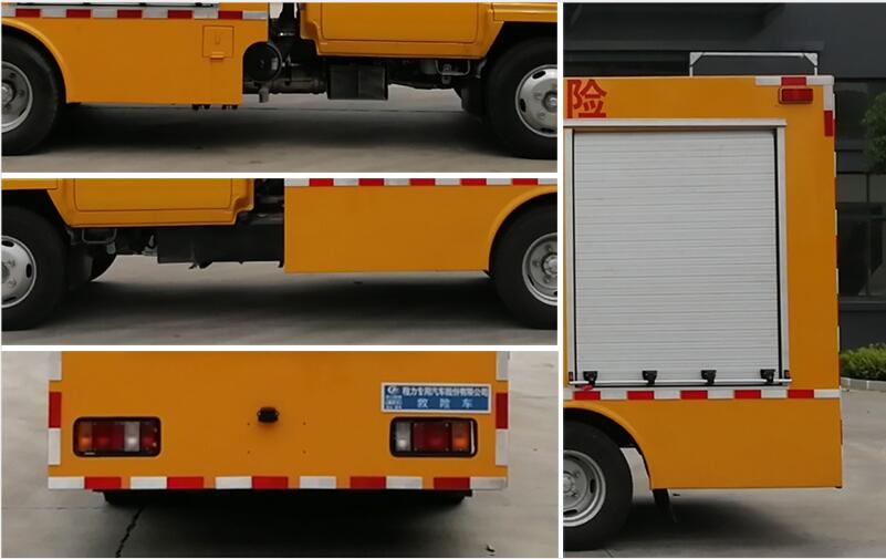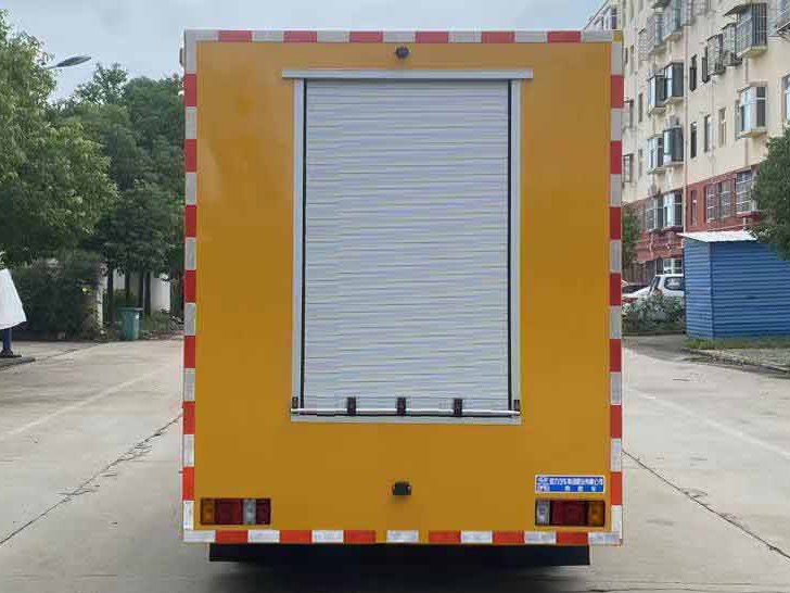 該車配備工程標識燈、發電機組、水泵、空壓機、線纜盤、升降照明系統等專用設備及控制系統,主要用于應急救險救援,應急排水作業; 車廂頂部封閉且不可開啟; 側后防護由車身結構代替,后部離地高為380mm; 該底盤選裝制動系統:裝液壓制動系統時,ABS及其控制器型號/生產企業對應關系為::APG3550500A/浙江亞太機電股份有限公司,CM4YL/廣州瑞立科密汽車電子股份有限公司;裝氣壓制動系統時,ABS及其控制器型號/生產企業對應關系為:CM4XL-4S/4M/廣州瑞立科密汽車電子股份有限公司,選裝后部外觀樣式