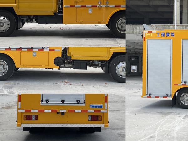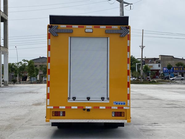 該車配備工程標識燈、發(fā)電機組、空壓機、線纜盤、升降照明系統(tǒng)等專用設備及控制系統(tǒng),主要用于應急救險救援,路面檢修搶險作業(yè); 車廂頂部封閉且不可開啟; 側(cè)后防護由車身結(jié)構(gòu)代替,后部離地高為410mm; 該底盤選裝制動系統(tǒng):裝液壓制動系統(tǒng)時,ABS及其控制器型號/生產(chǎn)企業(yè)對應關(guān)系為:APG3550500A/浙江亞太機電股份有限公司,CM4YL/廣州瑞立科密汽車電子股份有限公司;裝氣壓制動系統(tǒng)時,ABS及其控制器型號/生產(chǎn)企業(yè)對應關(guān)系為:CM4XL-4S/4M/廣州瑞立科密汽車電子股份有限公司.后部照明燈僅在作業(yè)狀態(tài)下使用,車輛行駛過程中關(guān)閉。