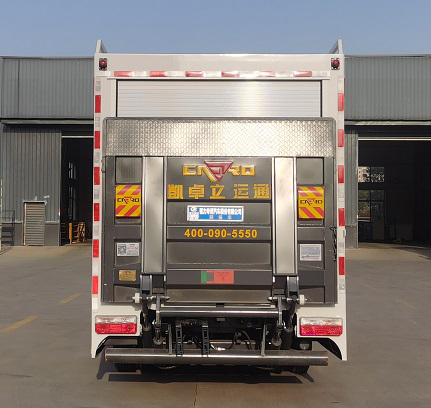 | 廂體頂部封閉,不可開啟.該車主要專用裝置:綁帶,用于運送機器人及相關專用設備.側面防護裝置材料:Q235A碳鋼,裙邊結構.后部防護裝置材料:Q235A碳鋼.連接方式:采用螺栓連接.后部防護斷面尺寸(mm)(直徑):120,后部防護離地高度(mm):330.ABS型號/廠家:ABS/ASR-24V-4S/4M/襄陽東風隆誠機械有限責任公司.整車長/前懸/軸距/后懸(mm)對應關系為:6070/1040/3308/1722,6070/1055/3308/1707.該車可選裝直接供電方式的ETC車載裝置.尾板收起狀態的水平距離(mm):280,尾板質量為(kg):350.發動機/油耗值L/100km對應關系為:YCY24140-60/16.3,Q28-130E60/14.9,Q23-115E60/14.5,H20-120E60/14.9.隨底盤選裝駕駛室. |
