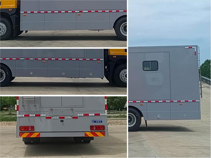 | 該車主要用于野外住宿,野外宿營保障,專用裝置:廂體,臥鋪; 廂體頂部封閉,不可開啟; 整車長/前懸/軸距/后懸對應關系為(mm):9920/1250(1410)/5600/3070(2910),9000/1410/5300/2290,8650/1250(1410,1285,1300)/5100/2300(2140,2265,2250),8400/1410(1285)/4700/2290(2415); 側防護為裙邊結構,后防護材質為Q235,焊接連接,截面尺寸寬×高(mm):60×120,下邊緣離地高495mm; ABS型號:3631010-C2000,J ABS;ABS生產企業:東科克諾爾商用車制動系統(十堰)有限公司,焦作博瑞克控制技術有限公司; 僅在駐車狀態下廂體兩側可擴展,行駛狀態時不可擴展. |