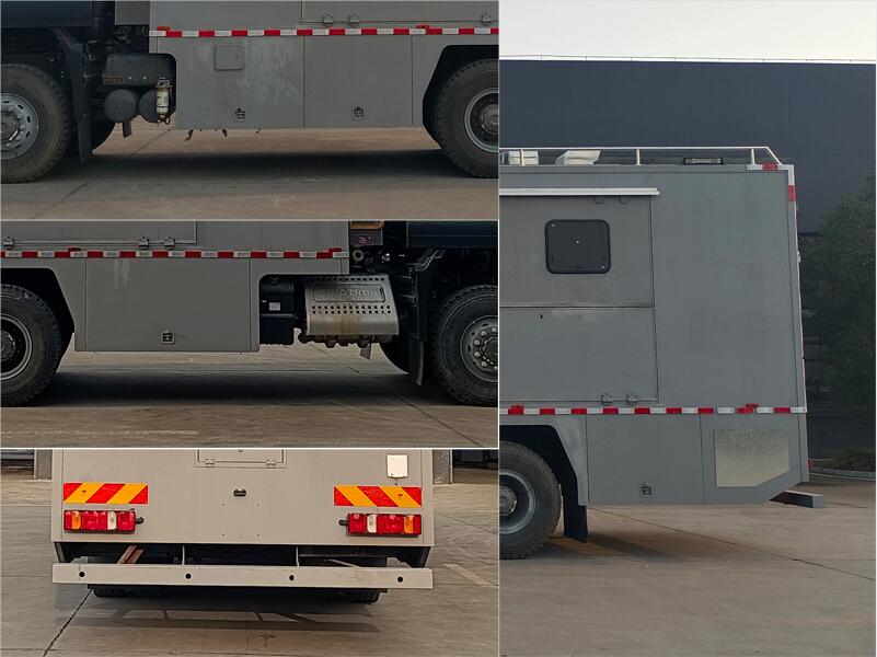 該車主要用于野外炊事餐飲保障,專用裝置:水箱、集成灶臺、蒸飯柜、油路水路系統等; 僅選用4500+1400mm軸距底盤改裝; 側防護采用裙邊結構代替,后防護材質采用Q235,焊接連接,后防護截面尺寸:120mm×120mm,下邊緣離地高480mm; ABS系統生產企業/型號:威伯科汽車控制系統(中國)有限公司/4460046300,威伯科汽車控制系統(中國)有限公司/4460037680; 側后部照明燈僅在駐車狀態下起照明作用,行駛過程中不能點亮; 僅在駐車狀態下廂體兩側可擴展,行駛狀態時不可擴展.
