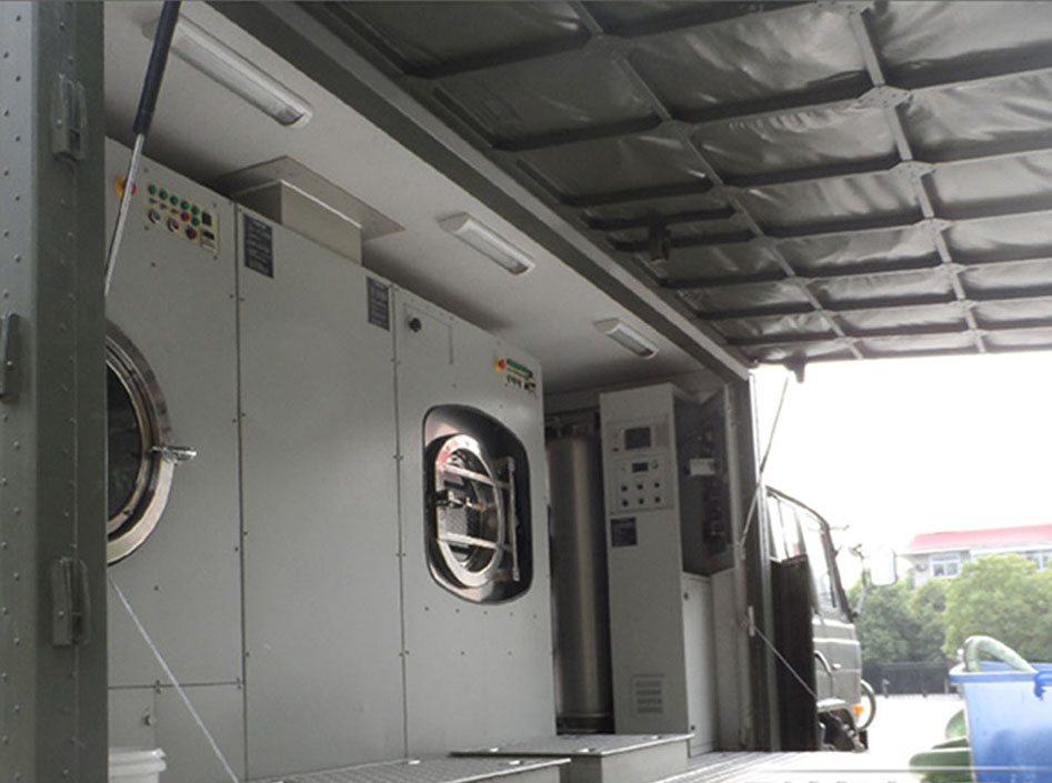 被服洗滌車功能介紹:消防救援被服洗滌車,集洗衣、烘干、掛燙等多功能于一體。該型裝備操作使用方便,機動性能好,自動化程度高,滿足一小時能洗滌50kg(50套)干重被服;40~55分鐘烘干50kg(50套)干重的被服需求。該型被服洗滌車由方艙艙體、洗衣系統、干衣系統、熱源系統、給排水系統、車載發電系統、電氣**系統等構成。