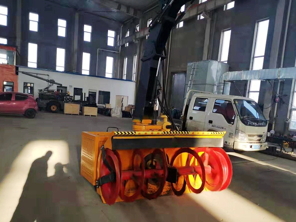 自帶動力型拋雪機:配有四缸55千瓦增壓發動機作為主動力,可調速變速箱,根據下雪的大小能改變拋雪的速度與拋雪距離,具有全無線遙控系統,無需對任何車輛改裝或加裝線路,內設置漩渦式高強度鉸籠,能將積雪鉸進進雪口,由離心式風扇強力吸入,通過出雪口,有效的達到除雪的理想工作,每小時可拋雪1000噸以上。