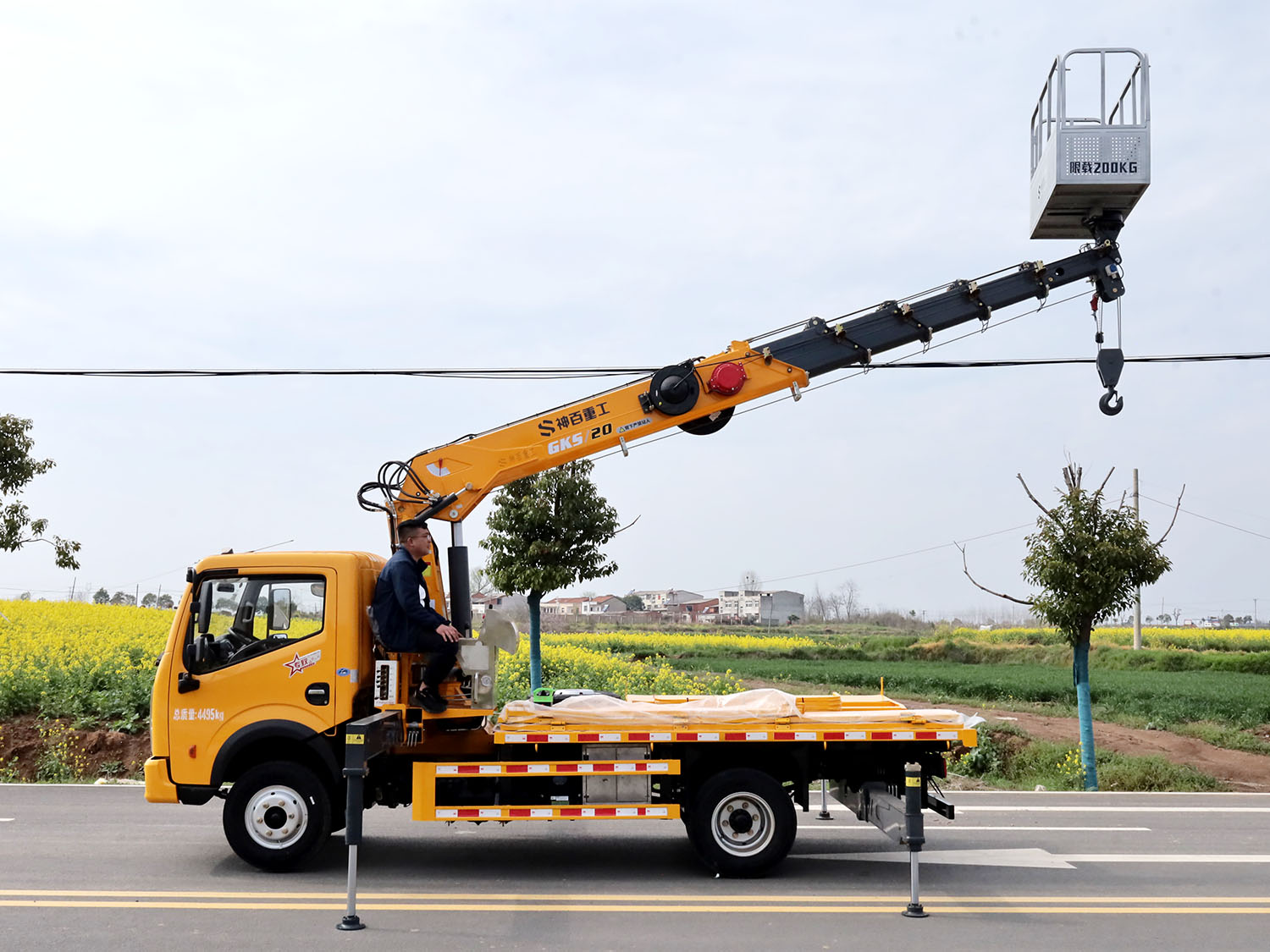 重汽豪沃單排上裝長興5噸直臂式吊機(帶高空作業功能)